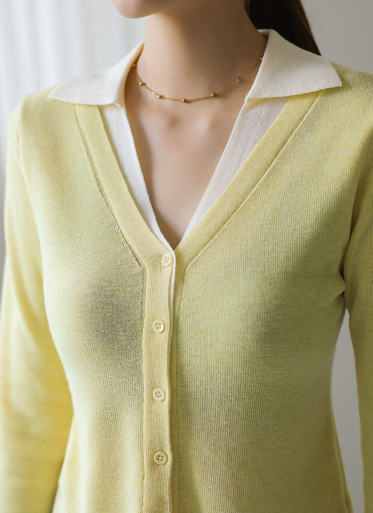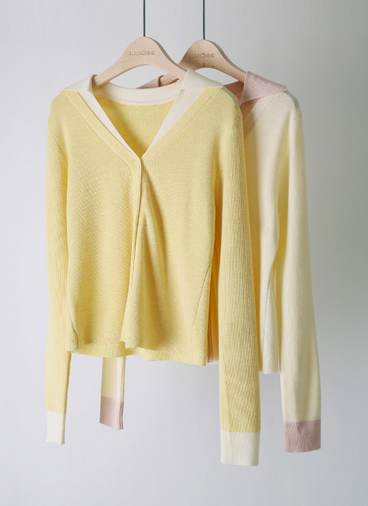 [This slim-fit ribbed knit creates a sophisticated layered look with its integrated shirt collar and V-neck design. The stretchy fabric offers a flattering silhouette with unrestricted movement for everyday comfort.]