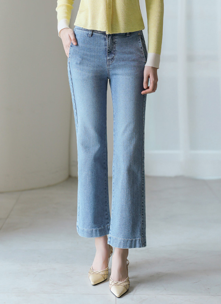 더 길고 슬림한 레그라인을 연출해주는 세미 와이드 데님 팬츠에요 :)