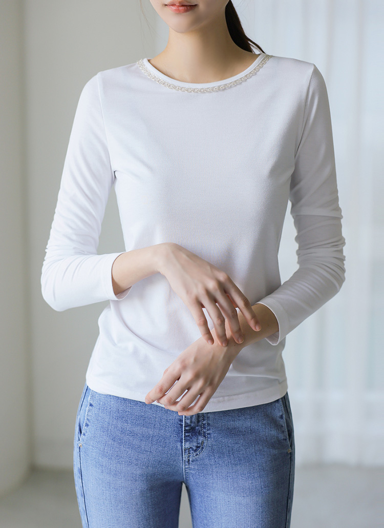 깔끔한 베이직 디자인에 레이스 네크라인이 포인트가 되어