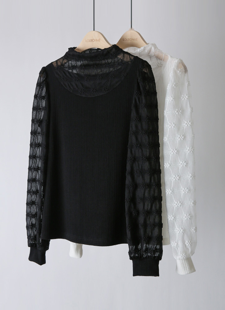 [LouisAngel] Blossom Lattice Mock Neck Top