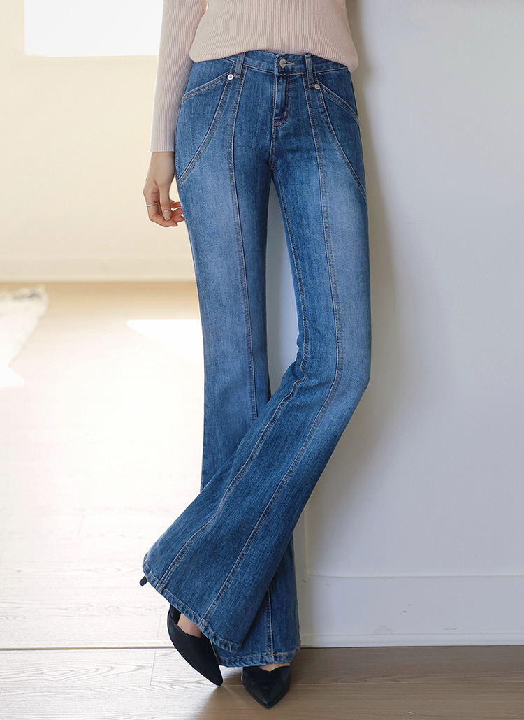 부츠컷 라인이 다리를 길고 슬림하게 보이게 해주며,