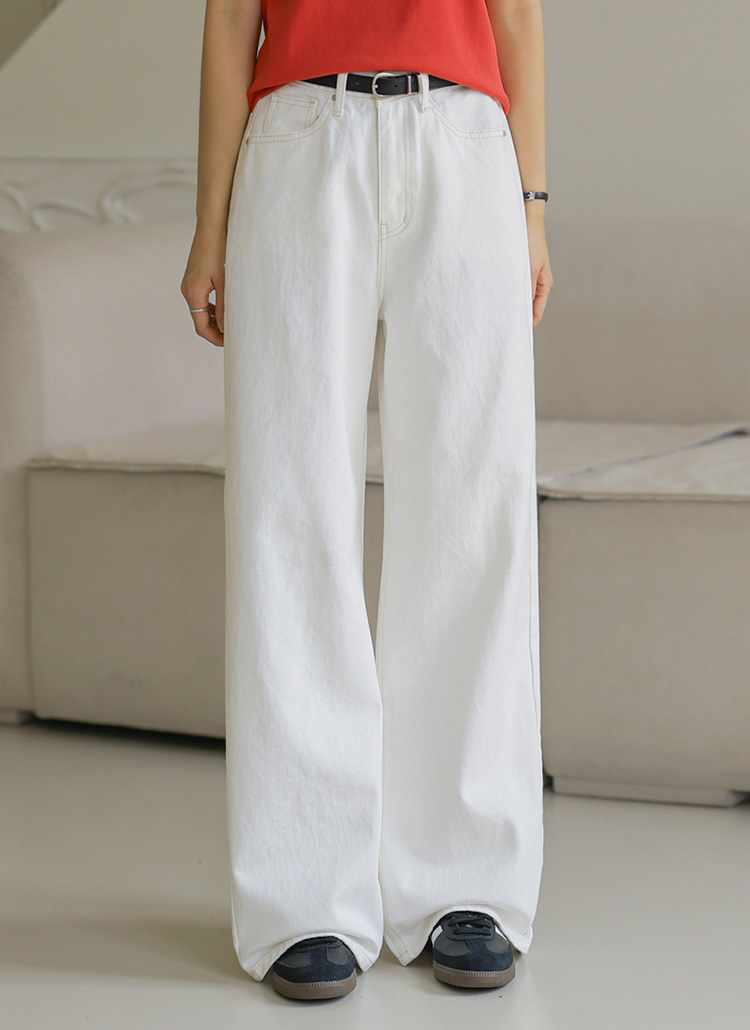스티치 라인으로 패턴감을 더해준 와이드 코튼 팬츠에요 :)