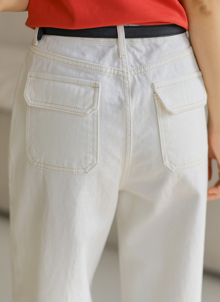 [A perfect blend of function and fashion, these cotton wide pants feature statement flap pockets and sharp stitching.]