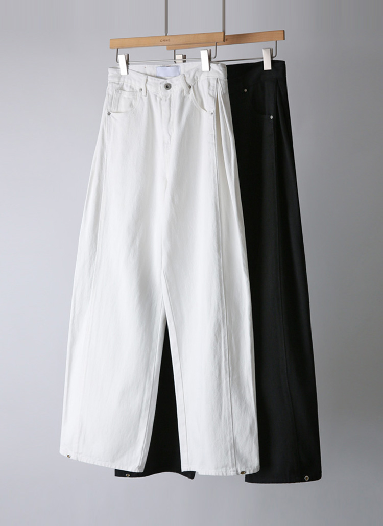 사이드 절개 핀턱으로 더욱 트렌디한 와이드핏을 연출해주며