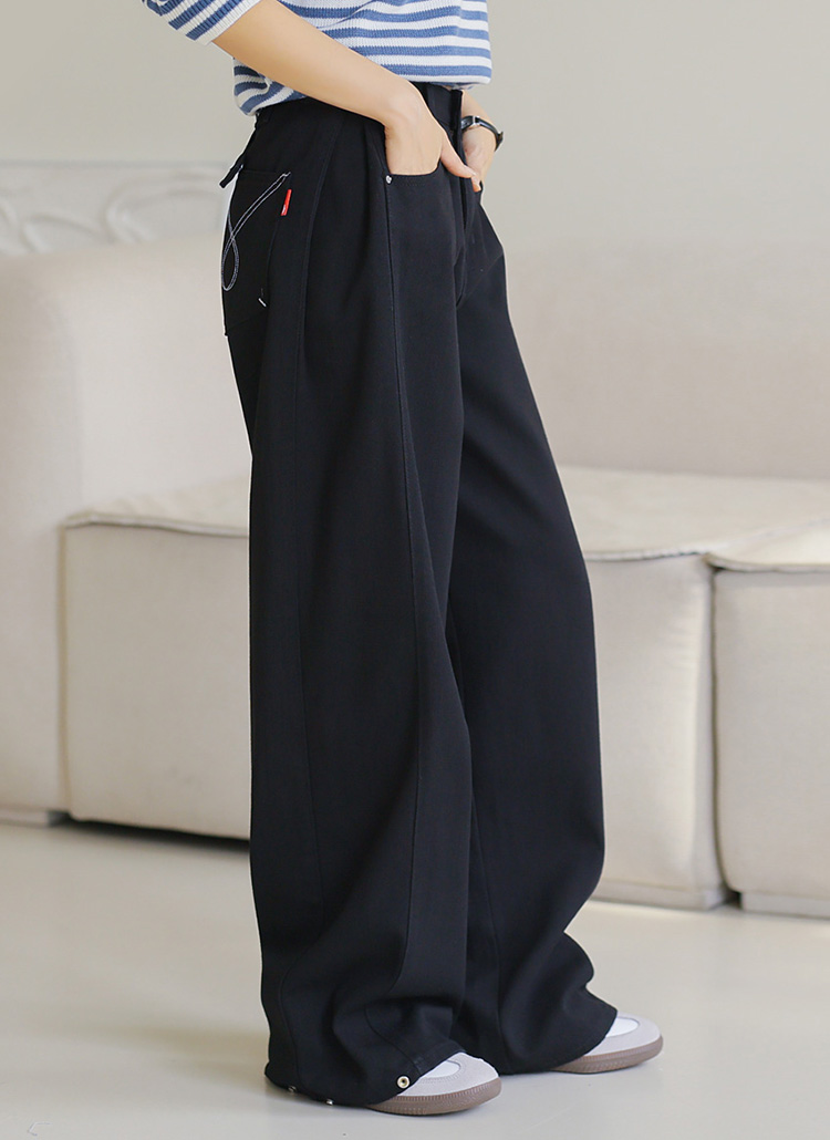 사이드 절개 핀턱으로 더욱 트렌디한 와이드핏을 연출해주며