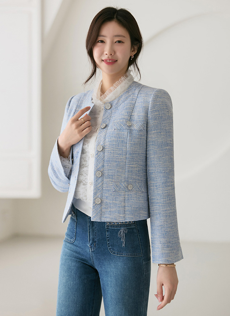 [LouisAngel] Azure Wave Tweed Jacket