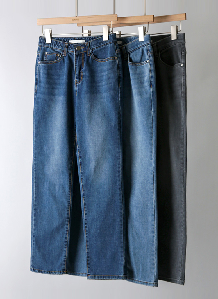 크롭한 슬림 일자 핏의 데님 팬츠에요 :)