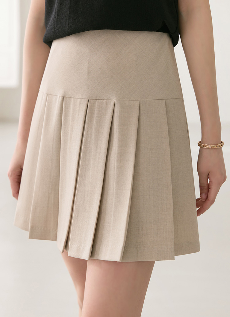 [A clean, modern mini skirt with subtle stretch and box pleats—complete with hidden shorts for extra ease.]