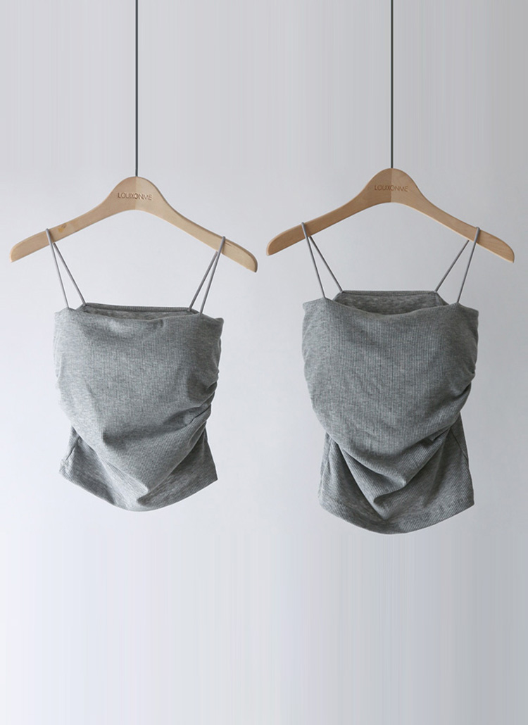[A slim ribbed cami with volume pads and subtle side shirring—wear solo or layer up, in short or long length options.]