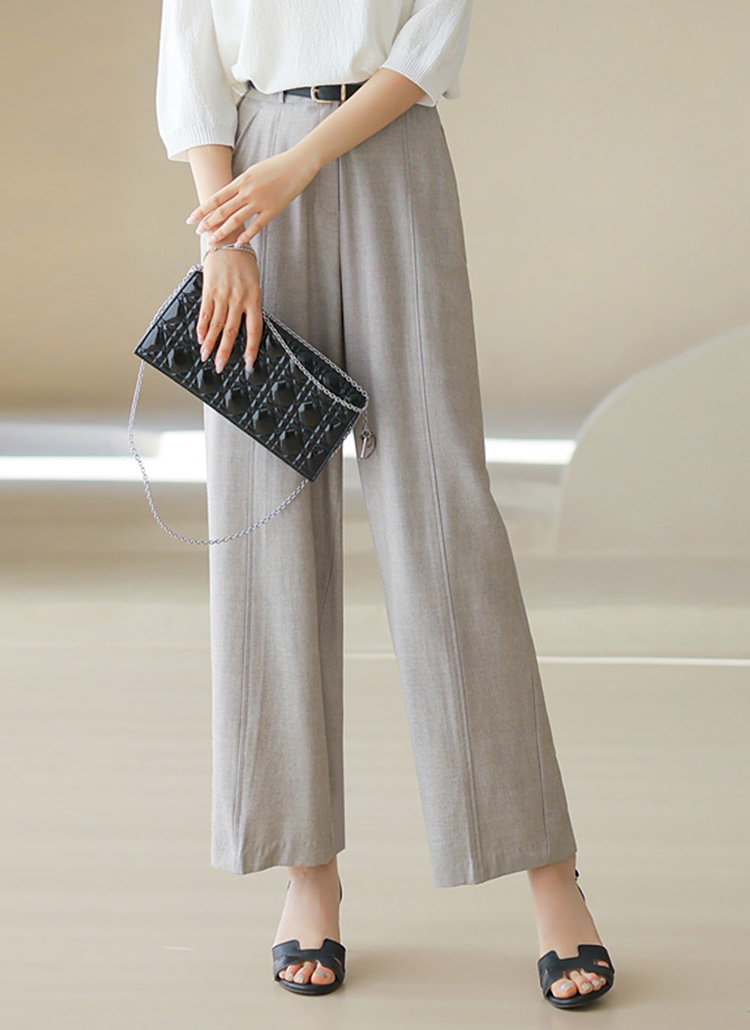 [Chic vertical seams and a fluid fit combine in these high-waist slacks for a leg-lengthening, summer-ready look.]