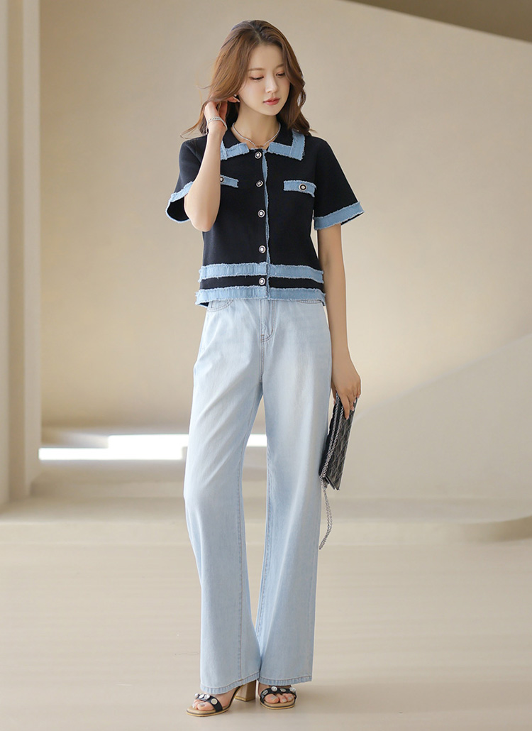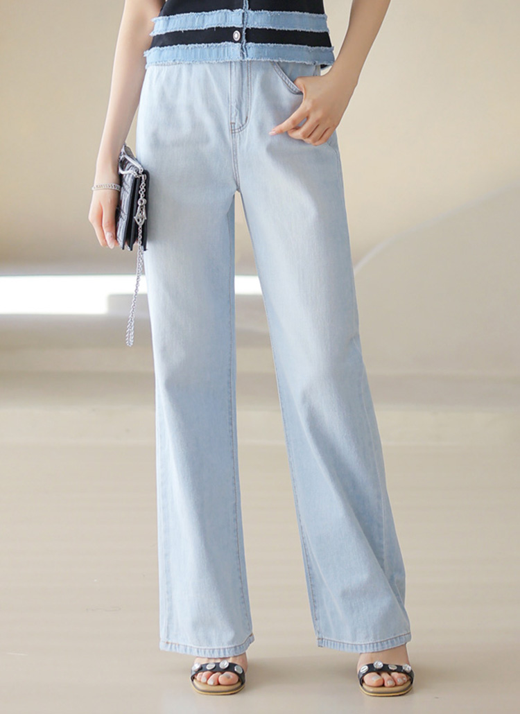 [Cool-toned washed jeans with a clean wide-leg silhouette. Soft cotton fabric keeps it breathable, sleek, and comfy.]