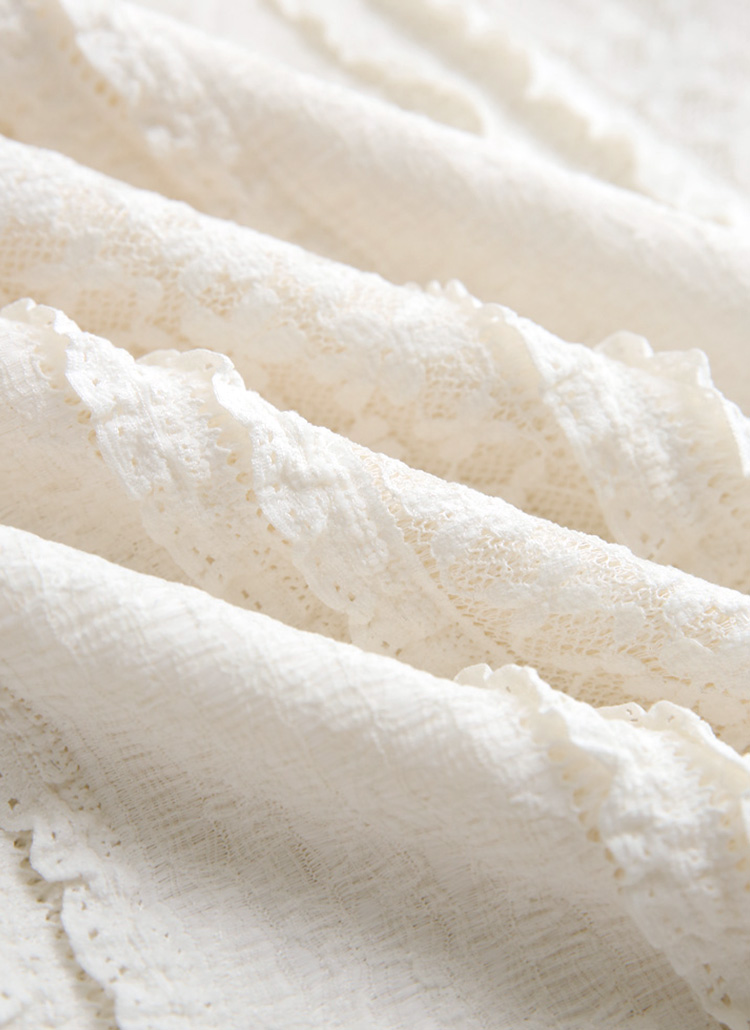 레이스와 프릴이 레이어드되어 화사하고 러블리한 무드를