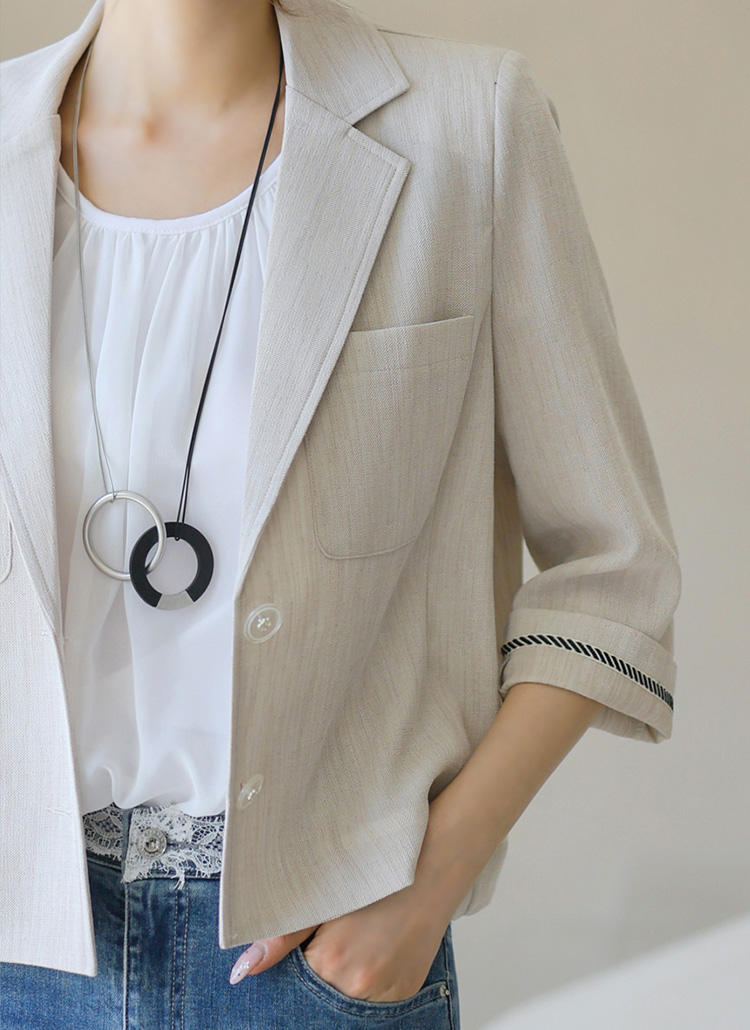 사각사각~ 린넨 라이크 원단으로 시원하고 쾌적한 착용감을 선사하는 테일러드 자켓이에요 :)