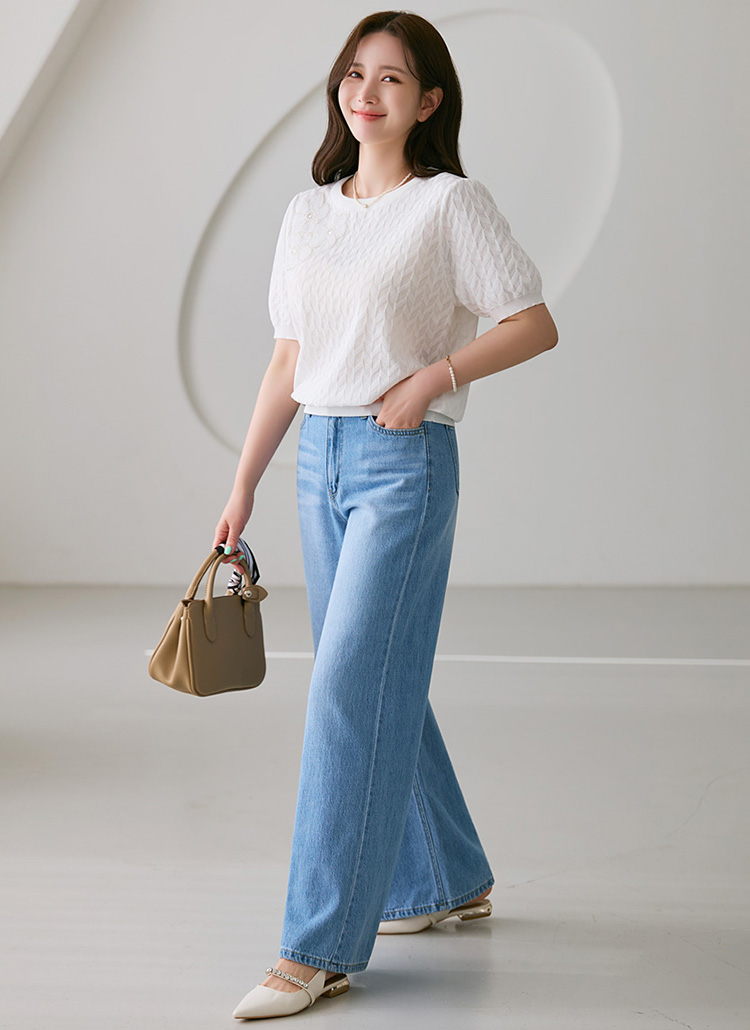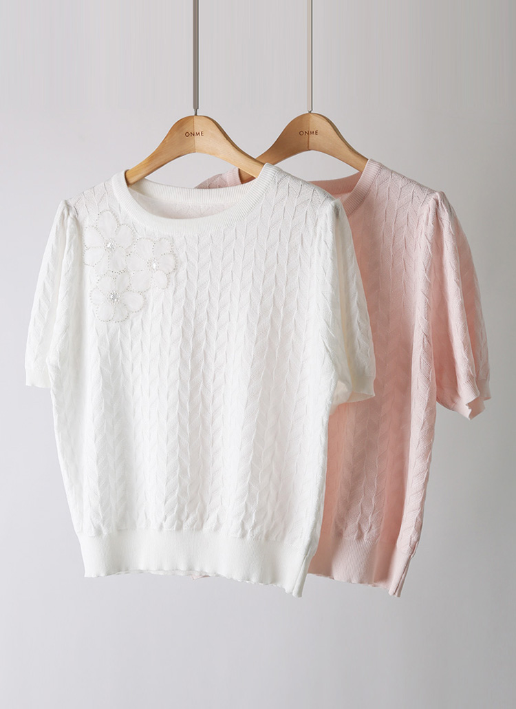 비즈와 진주로 화사함을 더한 라운드 니트에요 :)
