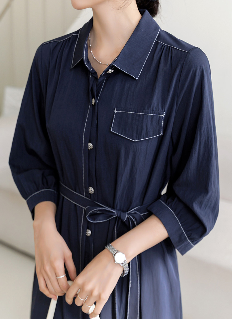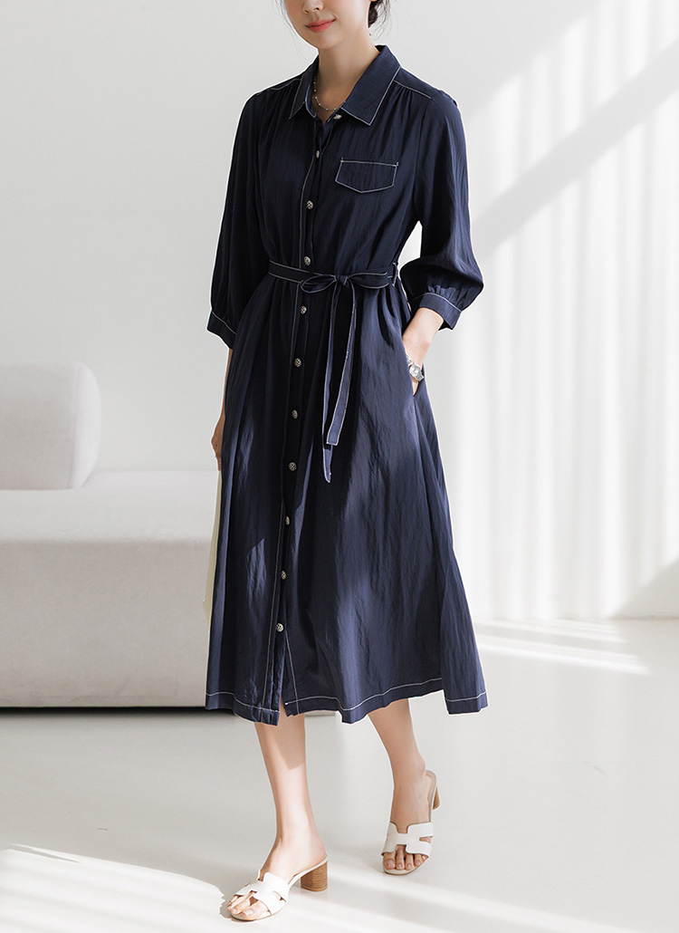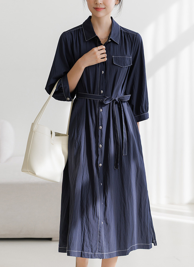 [The Onme] Summer Stitch Belted Shirt Dress