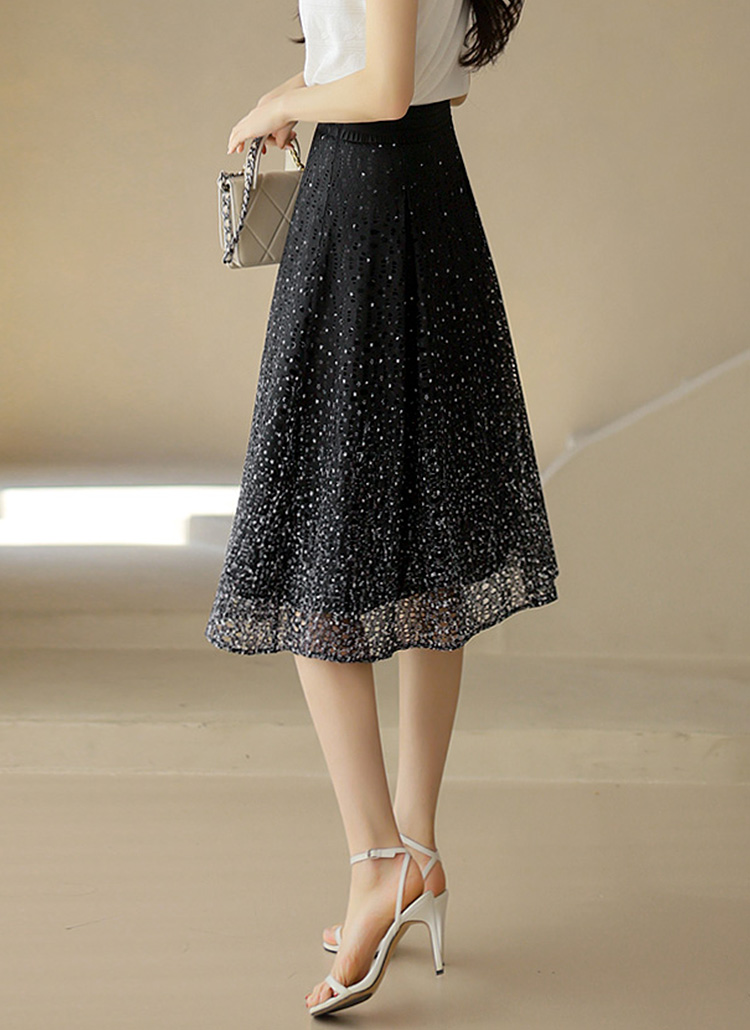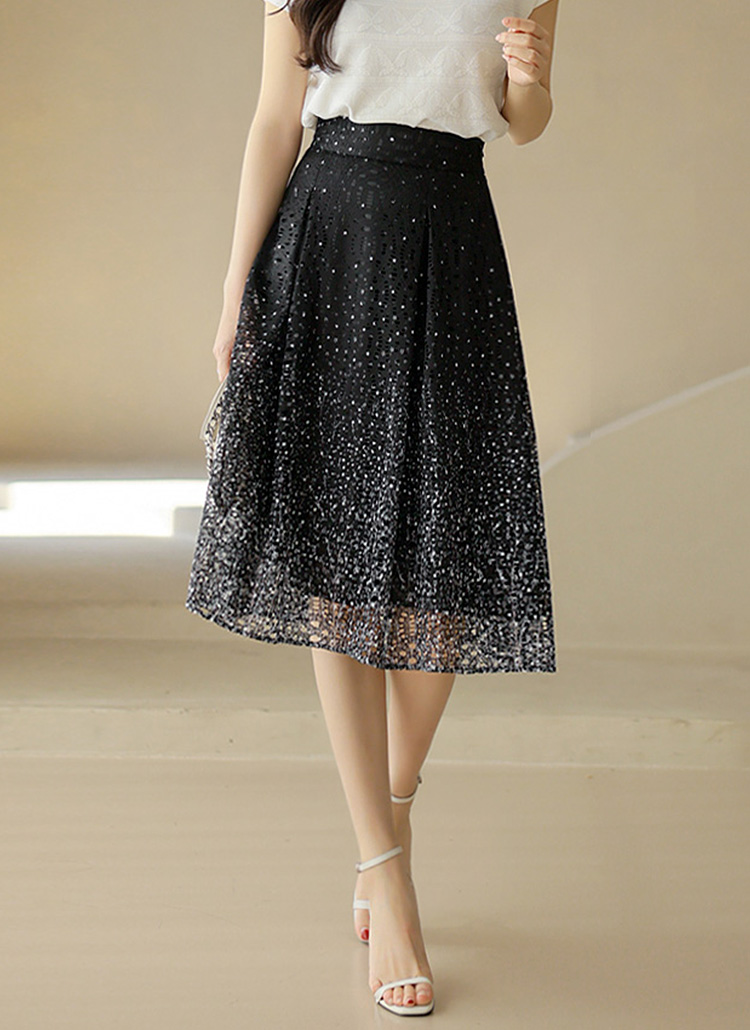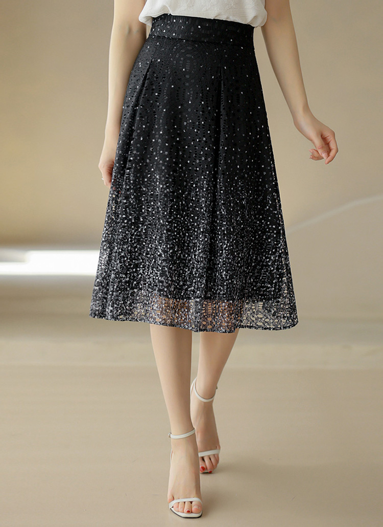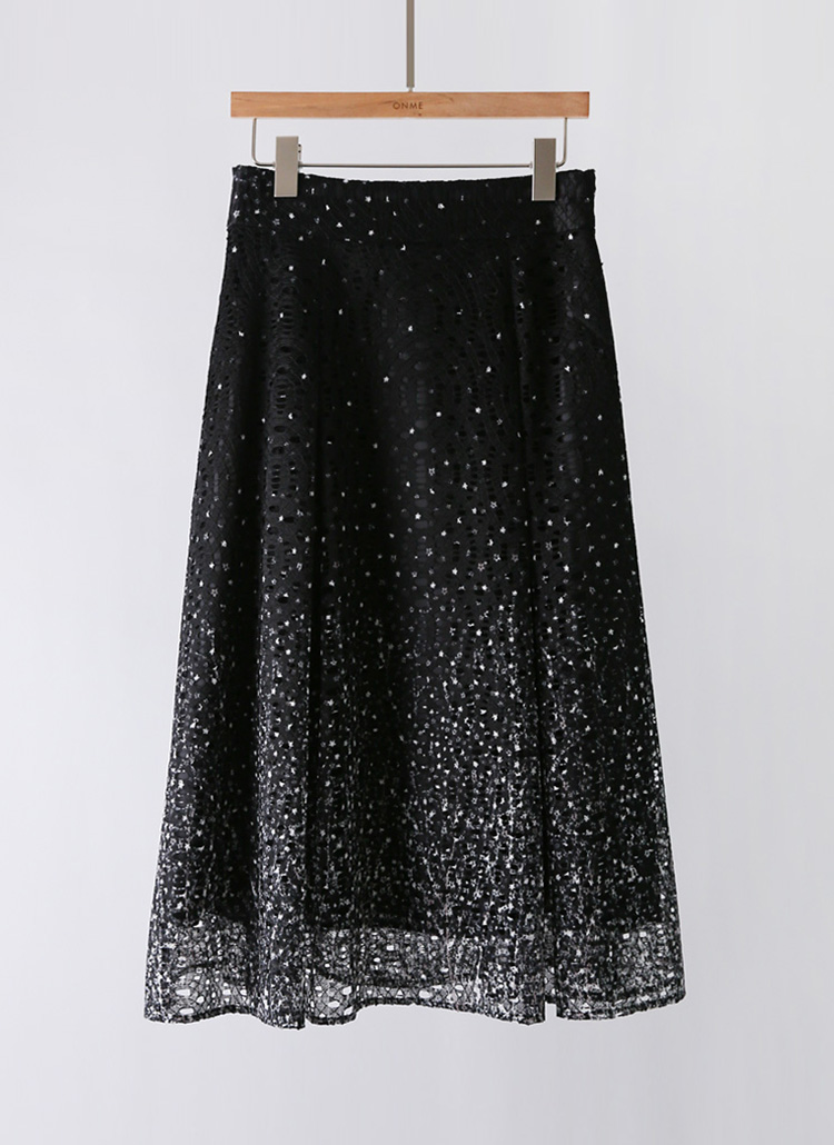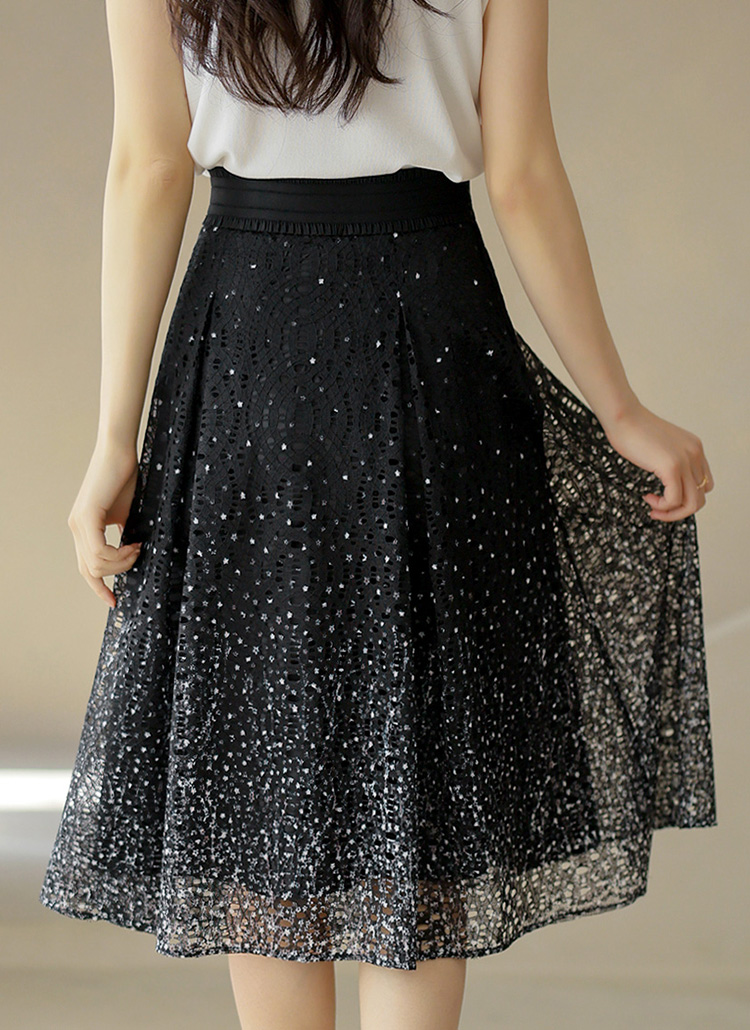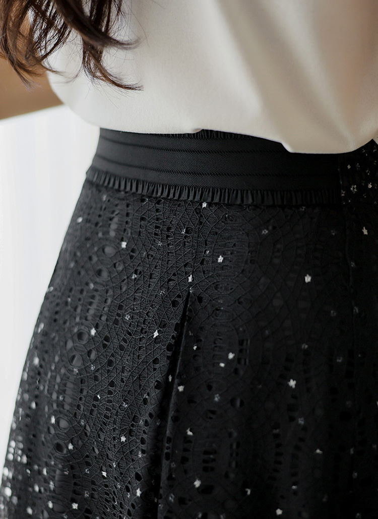 [Romantic lace with a misty floral sparkle—this airy A-line skirt brings elegance and lightness to your summer looks.]