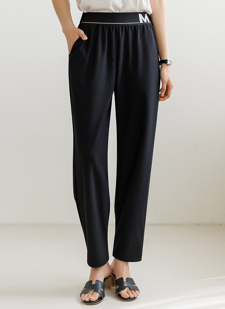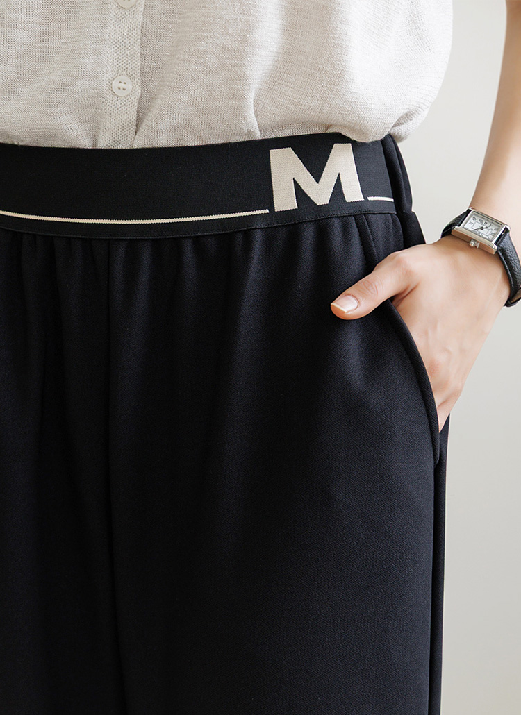 [A stylish lettered waistband adds a bold touch to these flowy pants—stretchy, comfy, and ready for casual or elevated looks.]