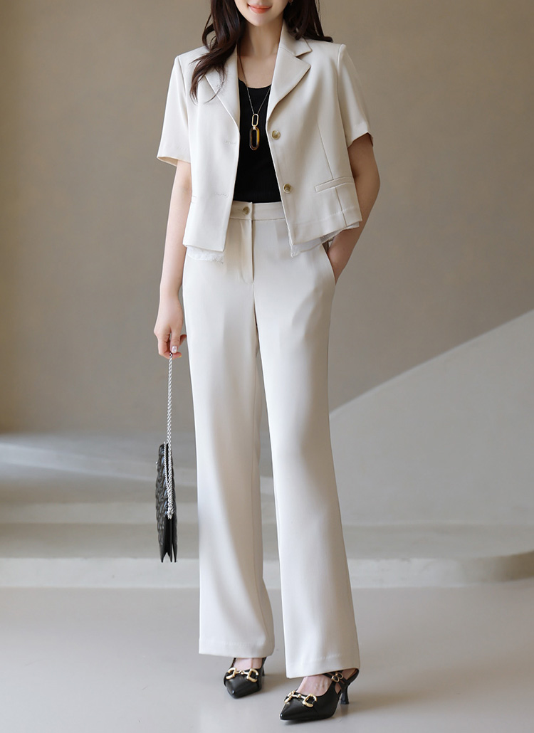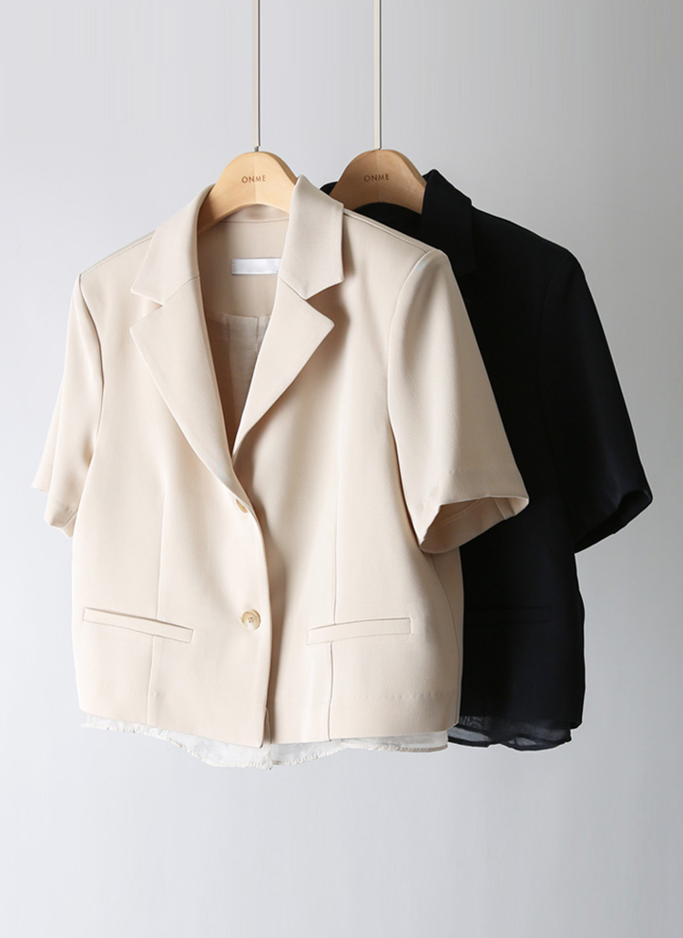 시원하고 여린 감성을 더하는 반팔 테일러드 싱글 자켓이에요 :)
