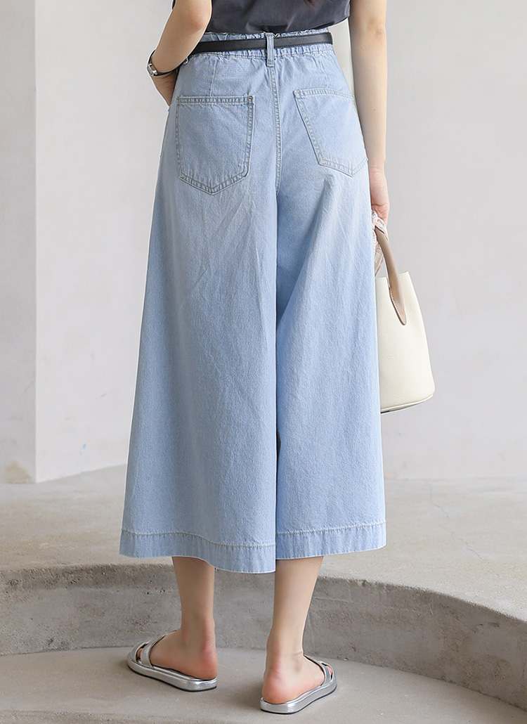 치마바지처럼 연출되어 페미닌한 무드가 돋보이는 데님 팬츠에요 :)