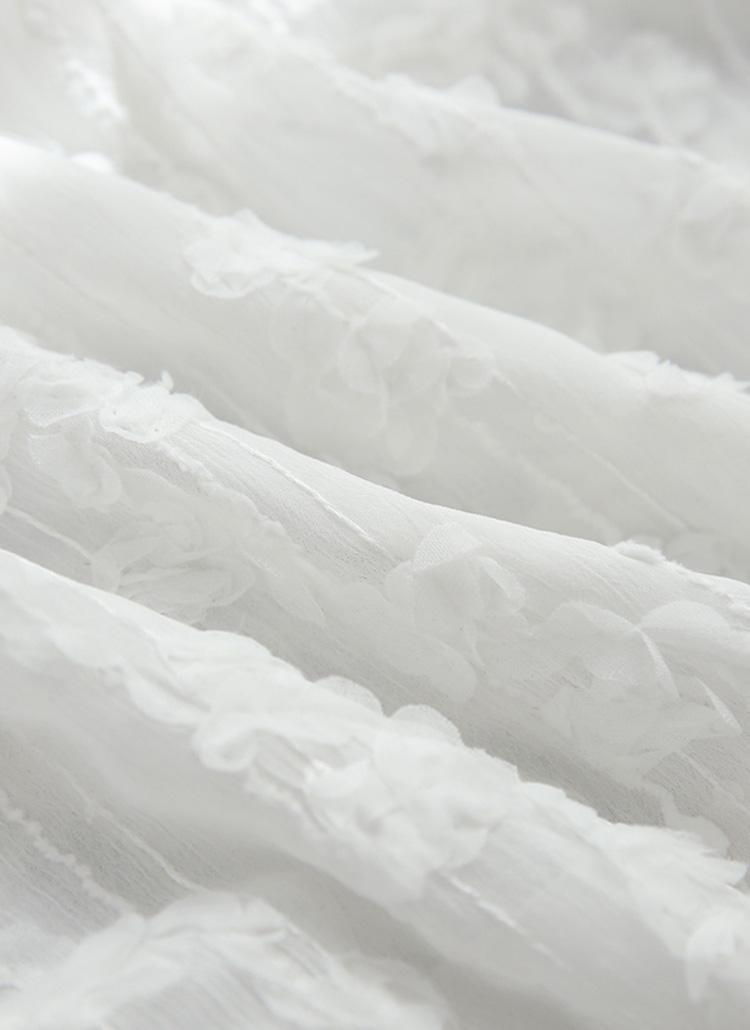 입체적인 쟈가드 플라워 패턴에 쉬폰 프릴라인이 더해져