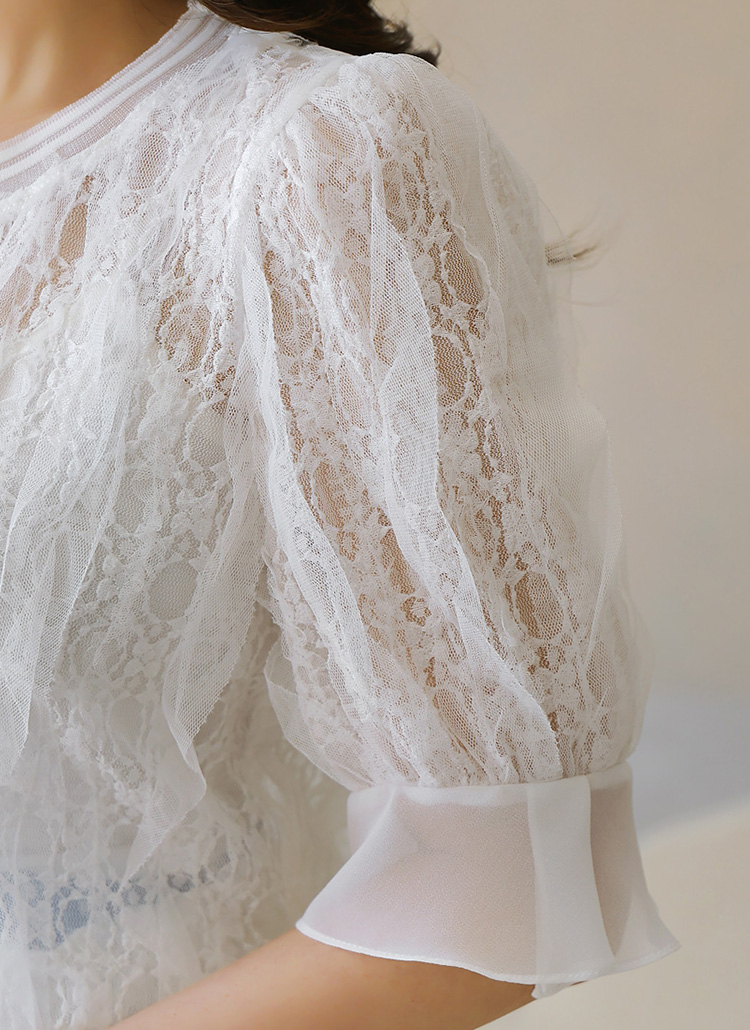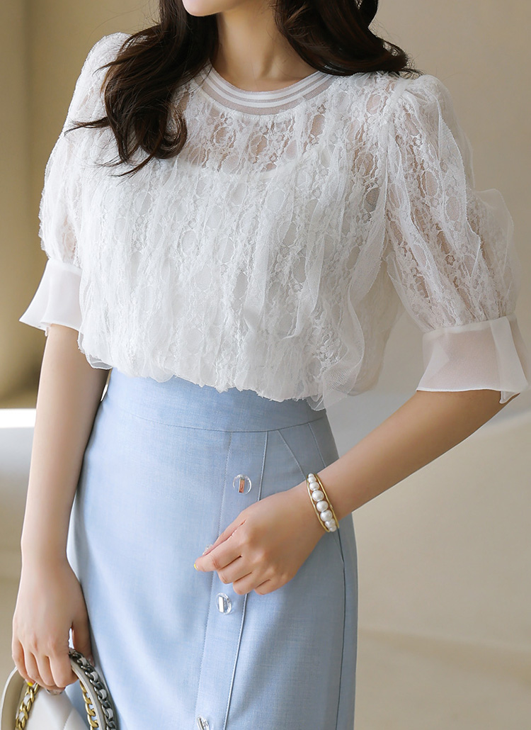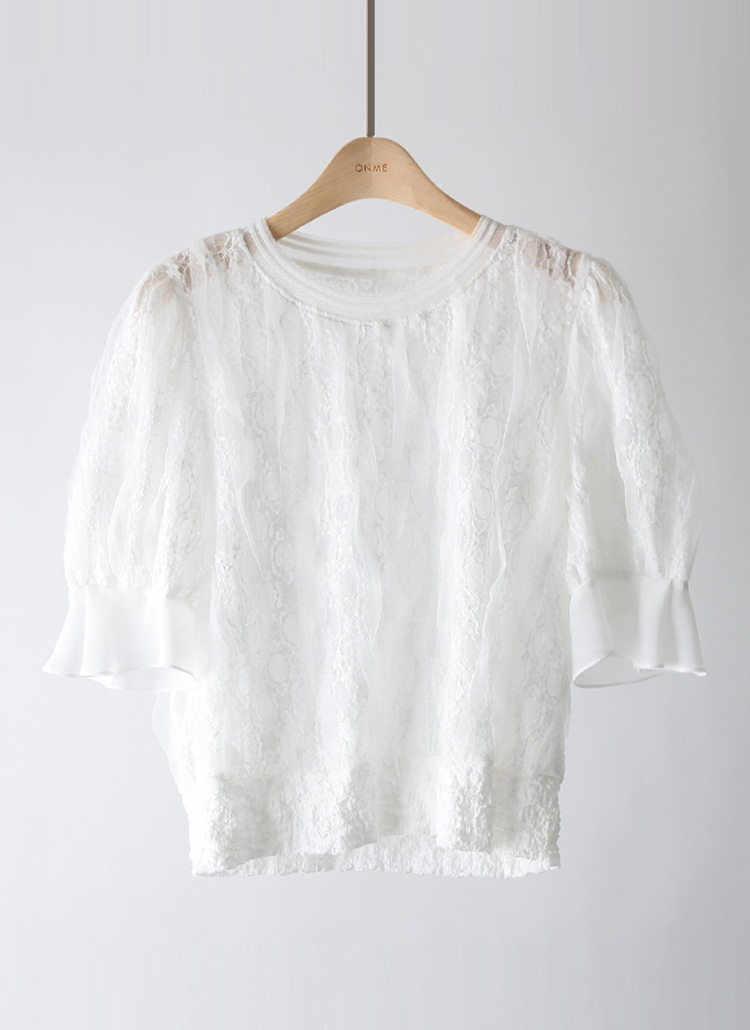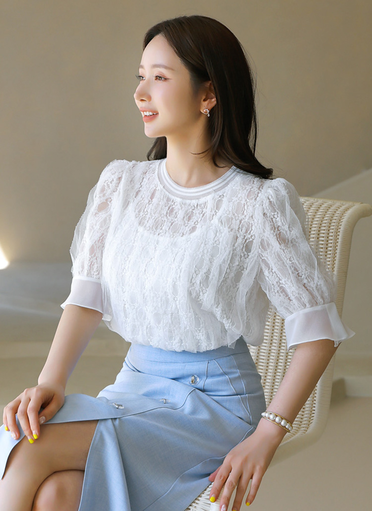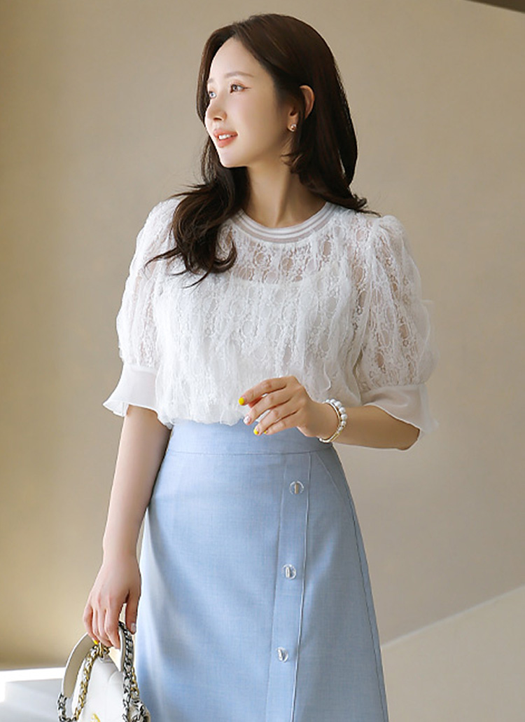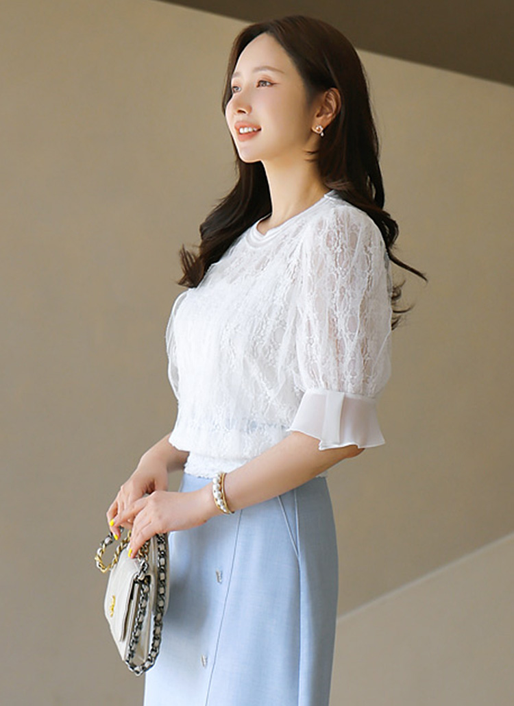 [LouisAngel] Bloomveil Textured Lace Blouse