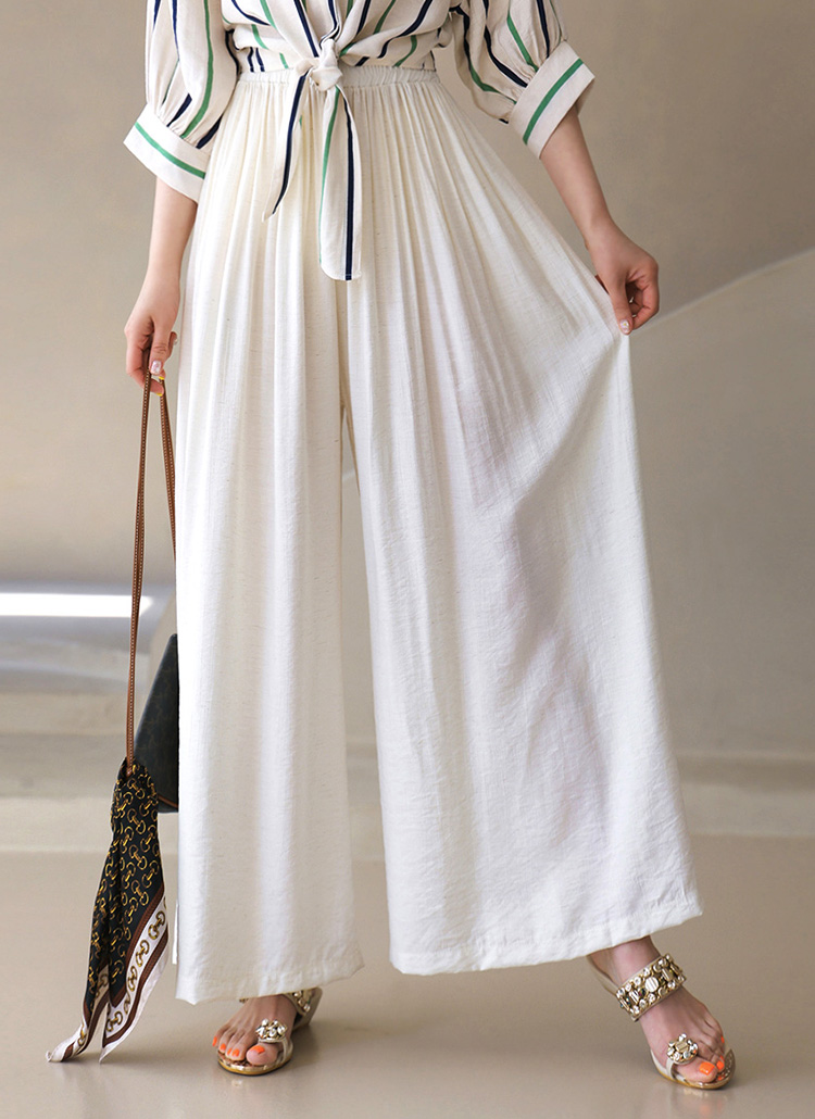 [Linen-rayon blend with fluid pleats and fixed waistband—cool, graceful, and perfect for relaxed summer elegance.]