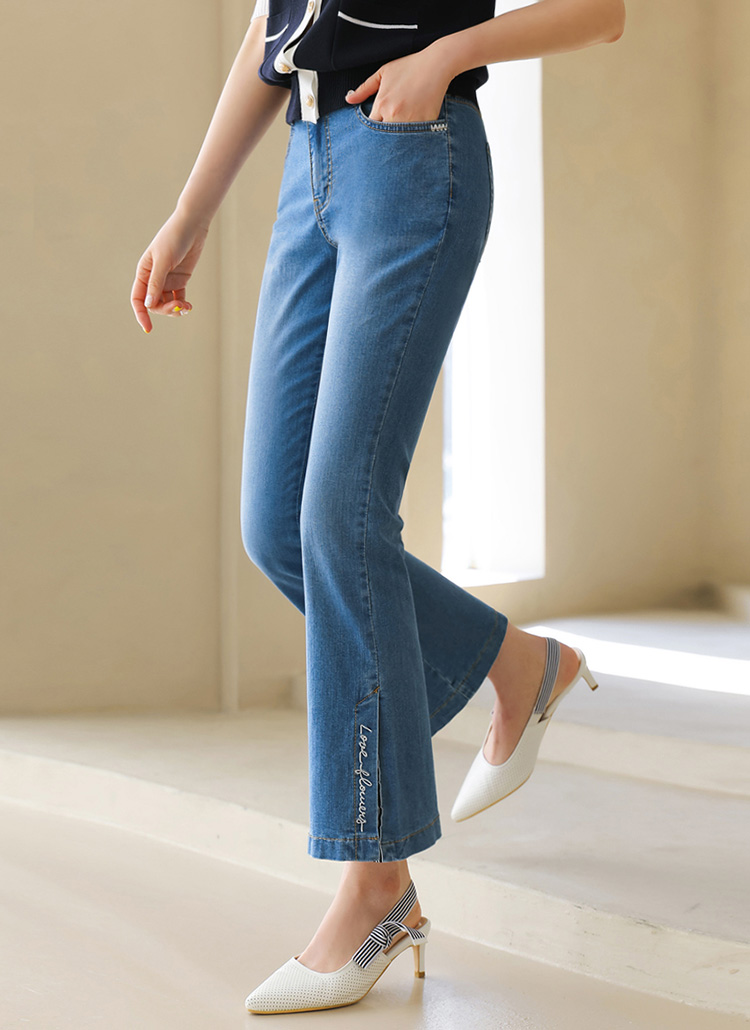 부츠컷 라인이 다리를 길고 슬림하게 보이게 해주며,