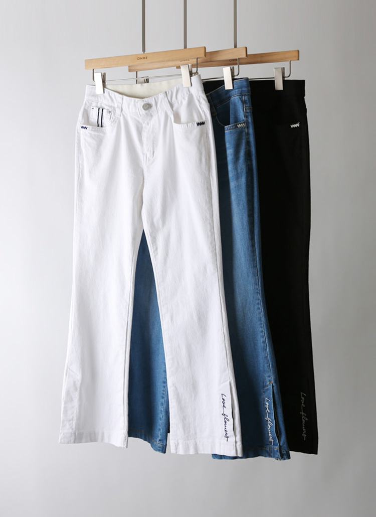 자수 레터링으로 포인트를 준 멋스러운 부츠컷 코튼 팬츠에요 :)