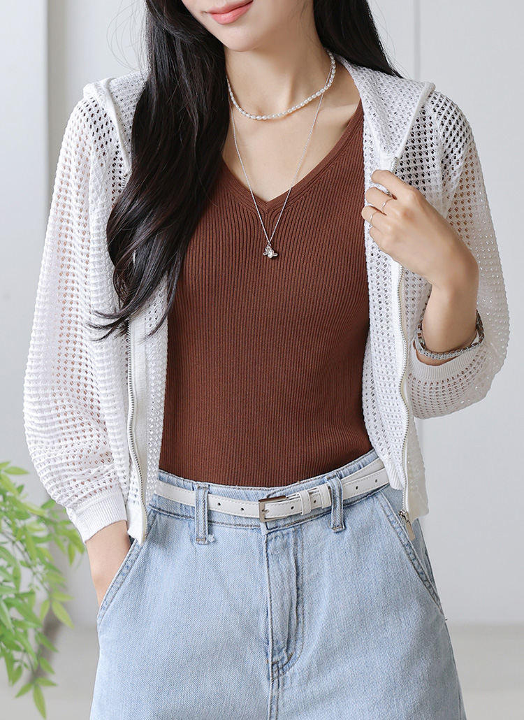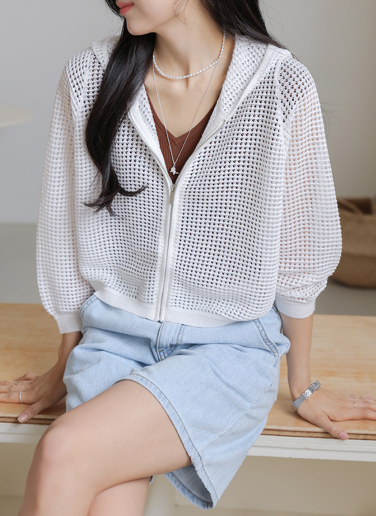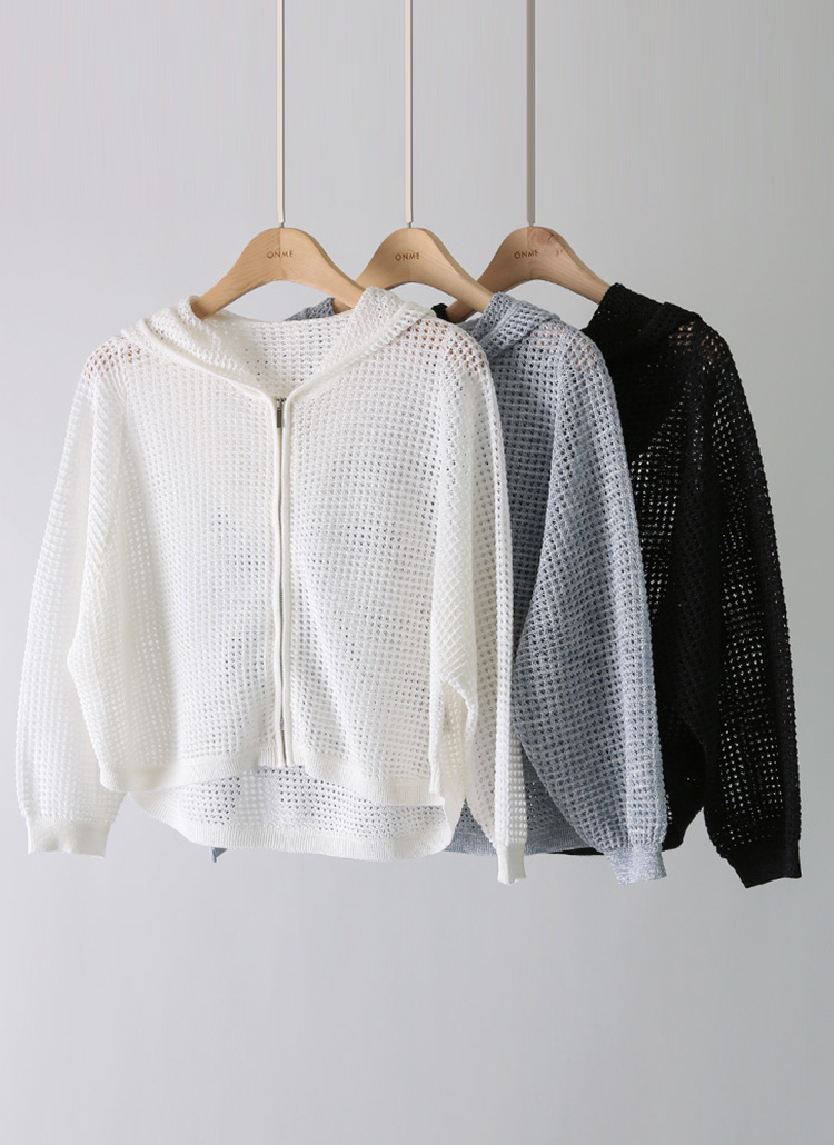 시원한 와플 펀칭 짜임이 매력적인 후드 집업이에요 :)