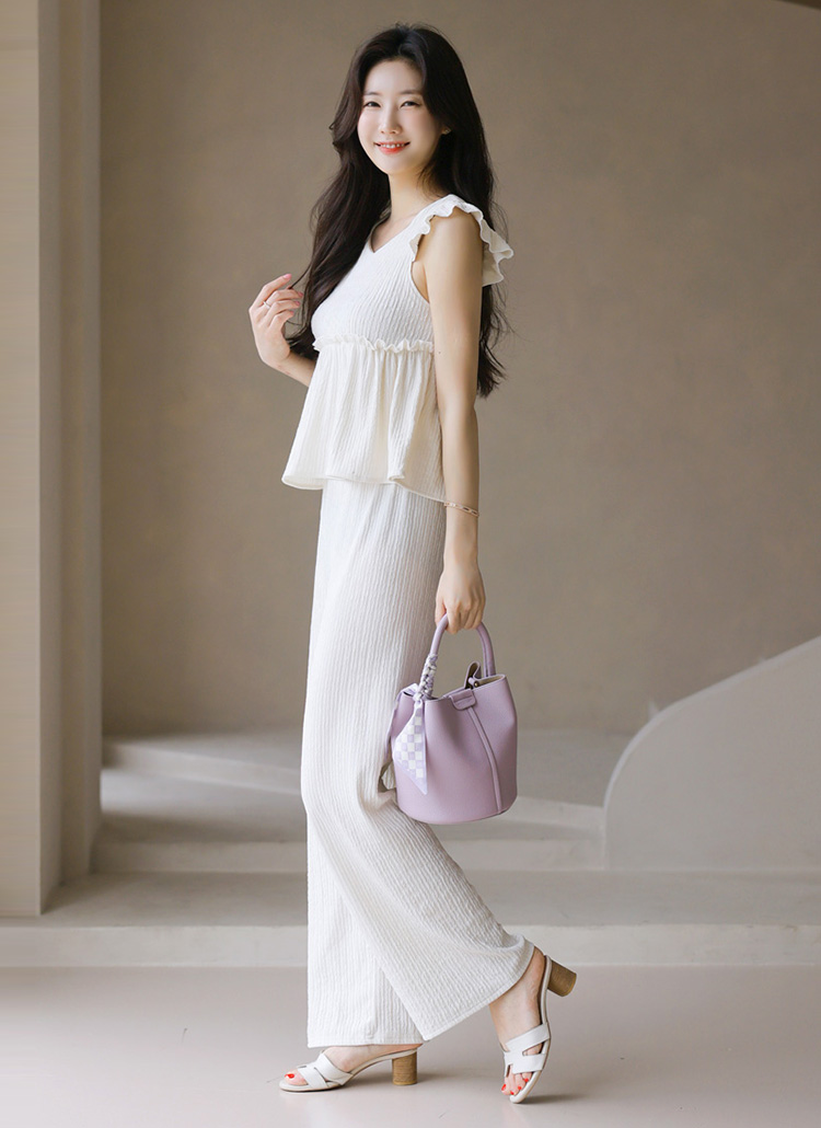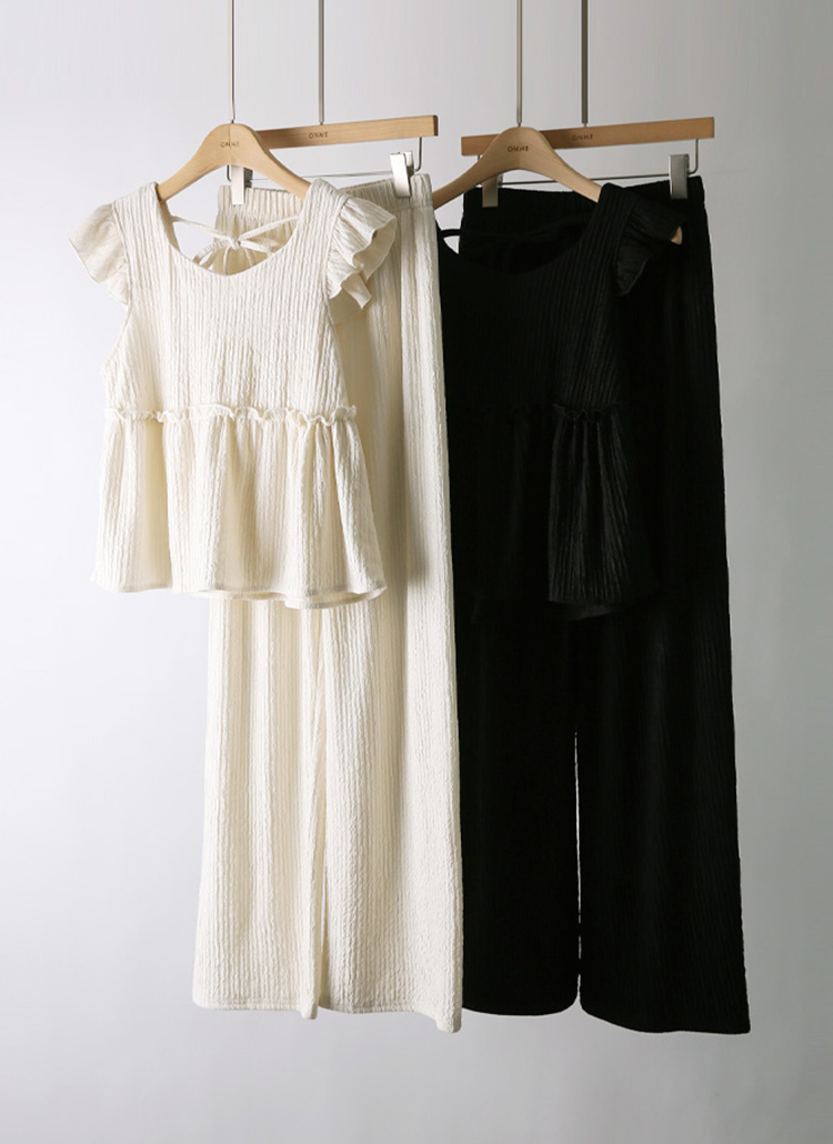 Frill Ribbon Top & Comfy Straight Pants SET