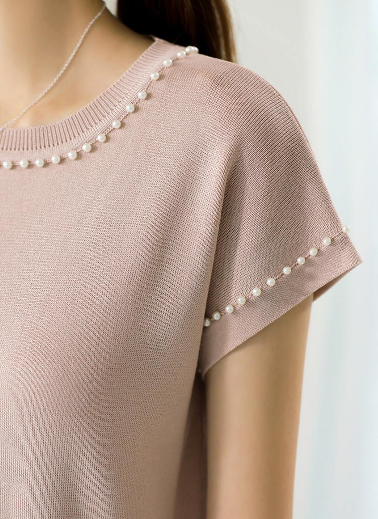 부드러운 니트 소재에 진주 라인이 더해져 네클리스를 한 듯한 효과로
