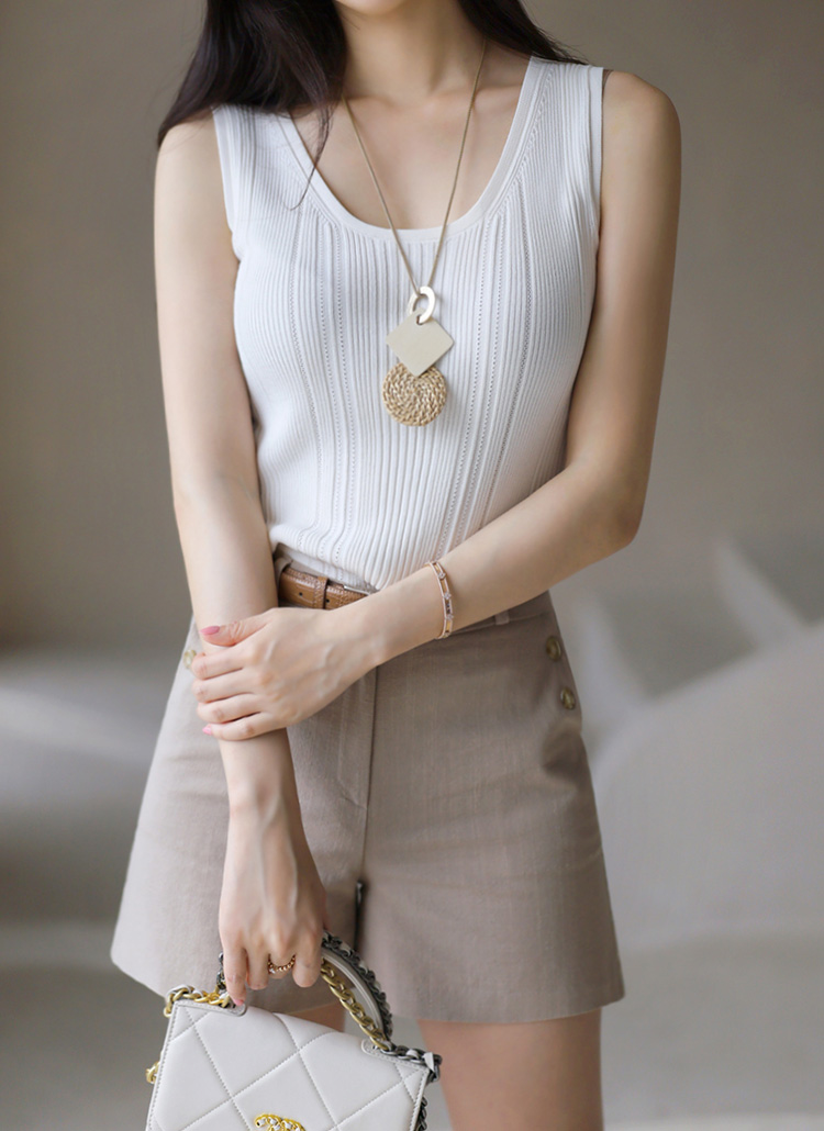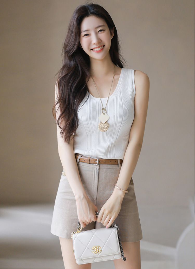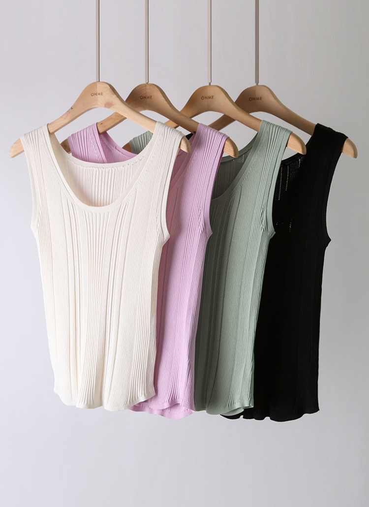 [Lightweight ribbed knit tank with perforated lines—soft, stretchy, and breathable for a clean summer look.]