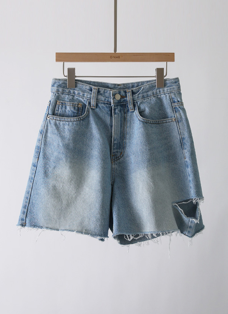 [The Onme] Side Slash Raw Hem Denim Shorts