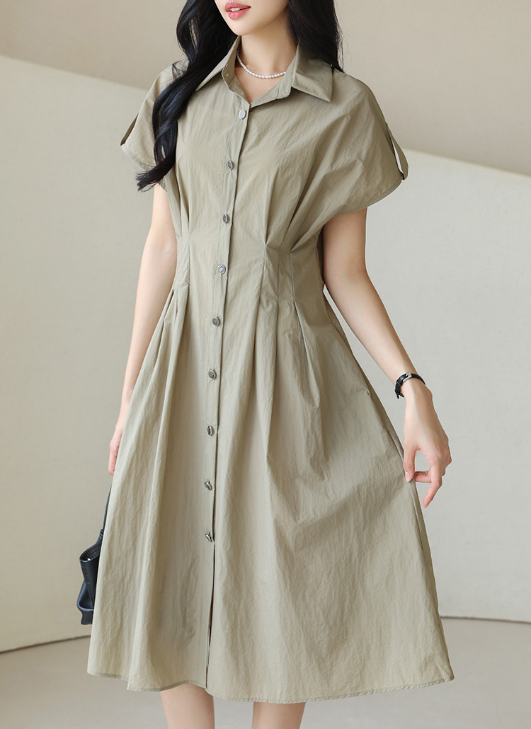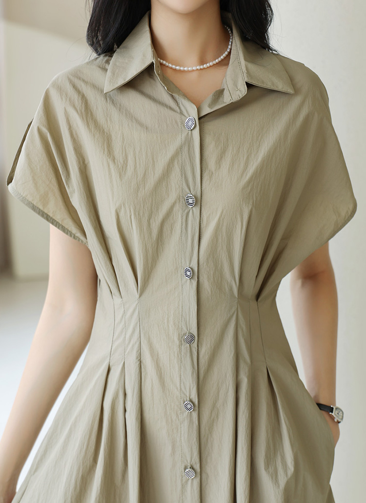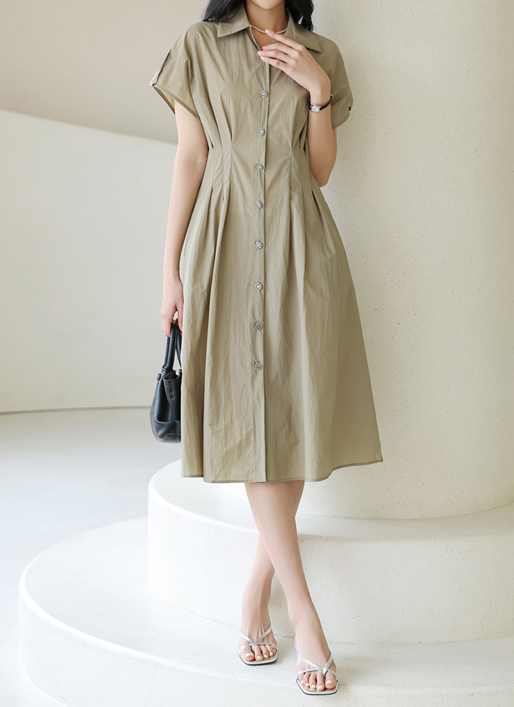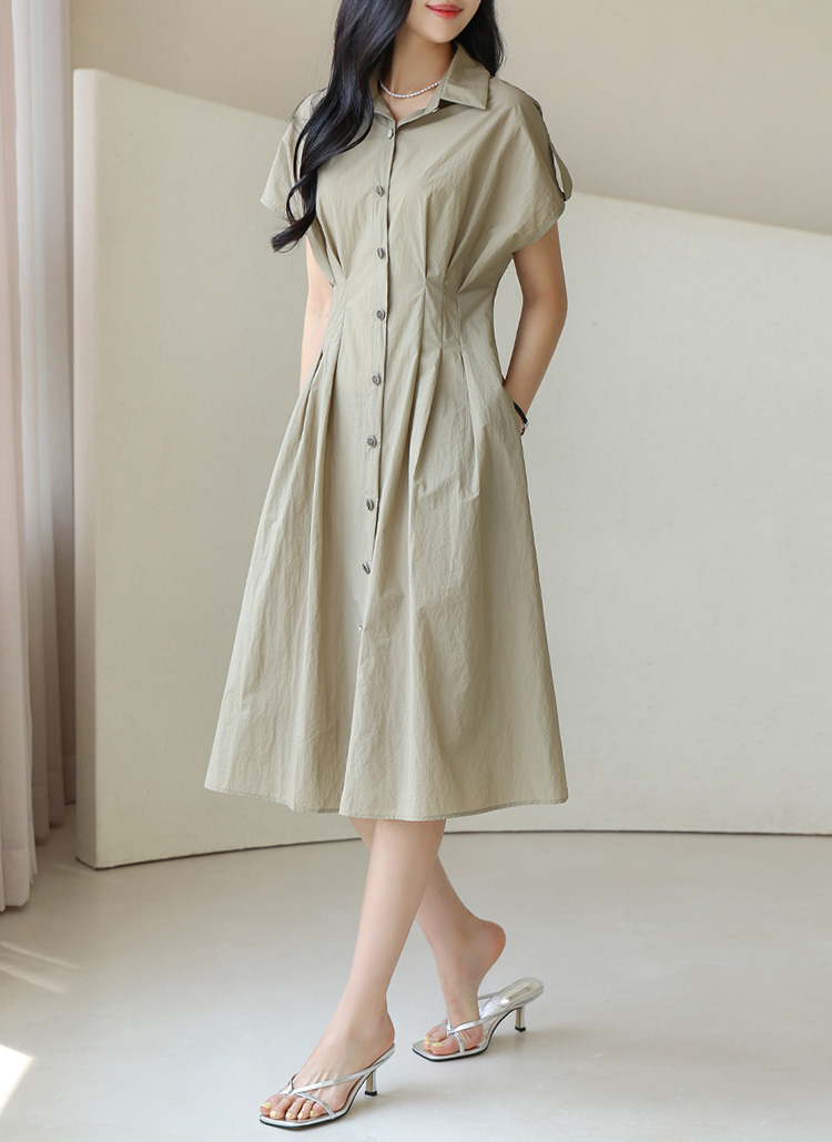 [The Onme] Silhouette Pin-Tuck Shirt Dress