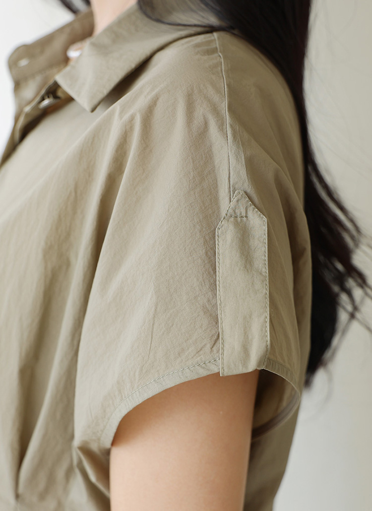 [A sleek shirt dress with shoulder detail, pin-tuck shaping, and flared hem—perfect for effortless summer refinement.]