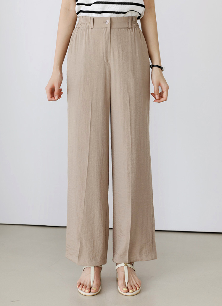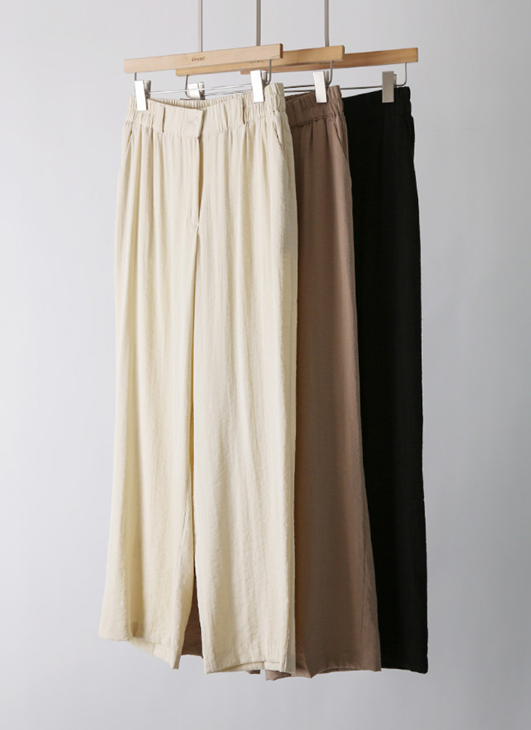 [Soft rayon blend with a flowy touch_these wide pants feature back elastic and a flattering drape for all-day comfort.]