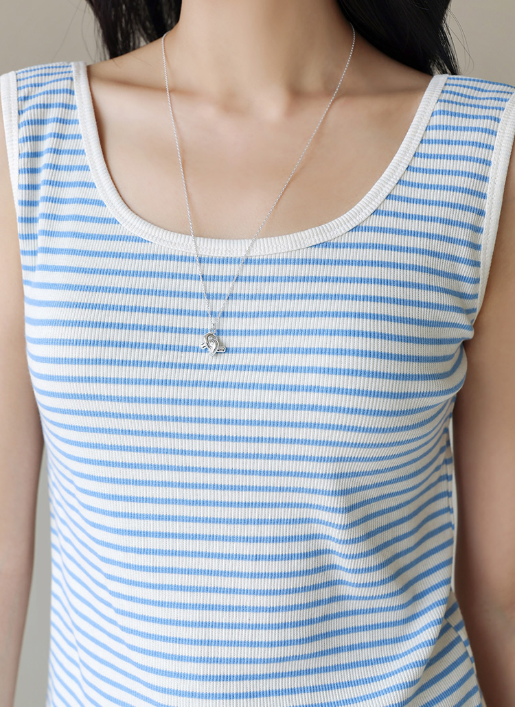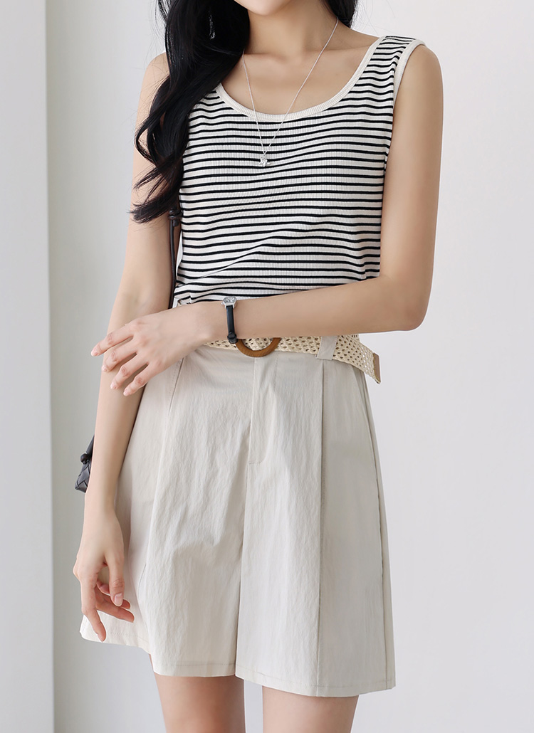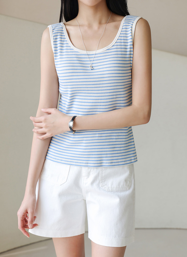 [The Onme] (4 Colors) Dual Neckline Striped Rib Tank