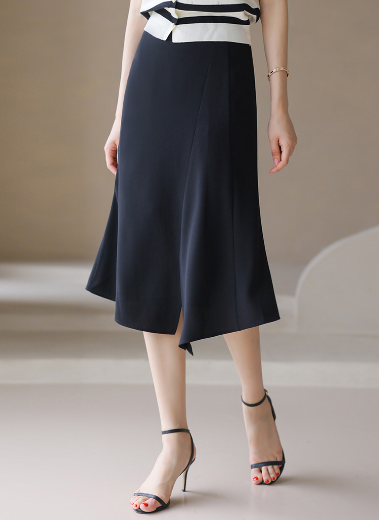 [With a diagonal cut and subtle flare, this skirt offers elegant volume, easy movement, and a sleek zip-back finish in 3 colors.]