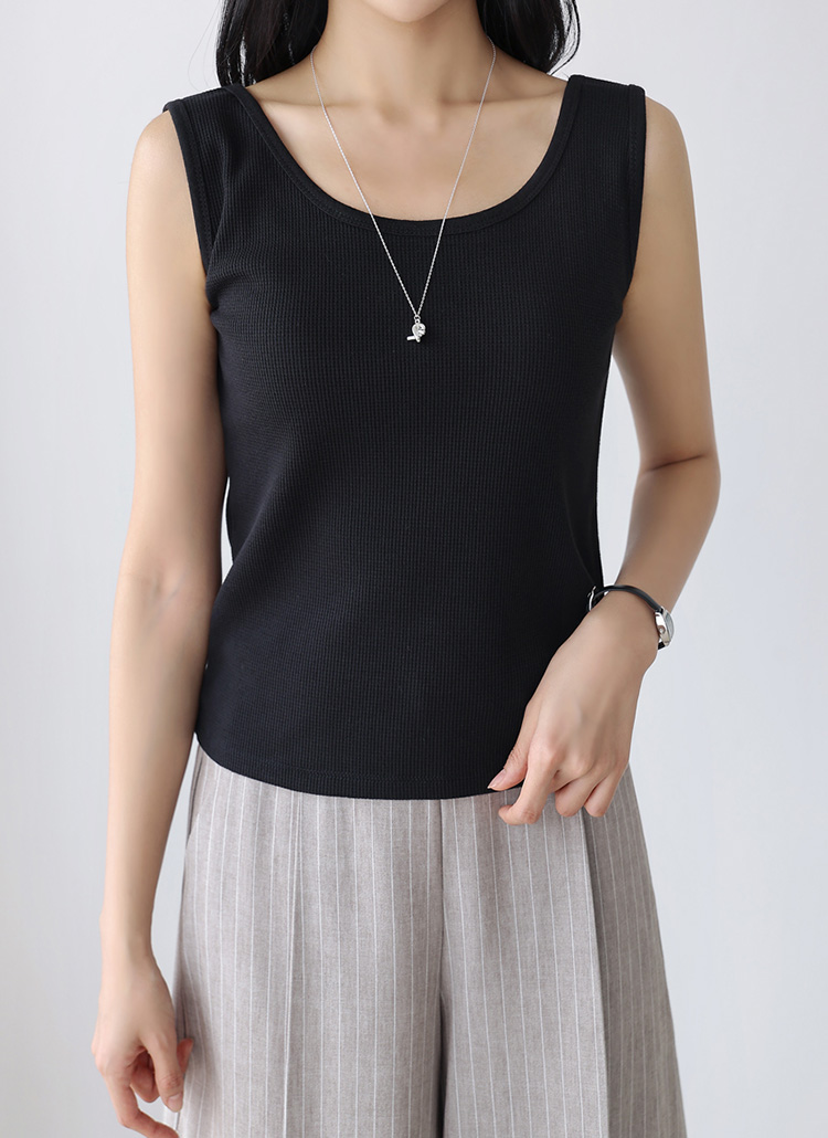 [The Onme] (4 Colors) Flip Neck Waffle Textured Tank