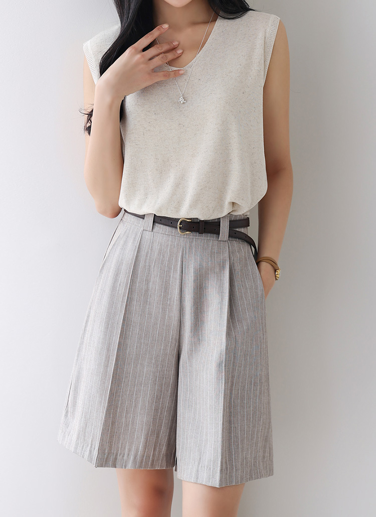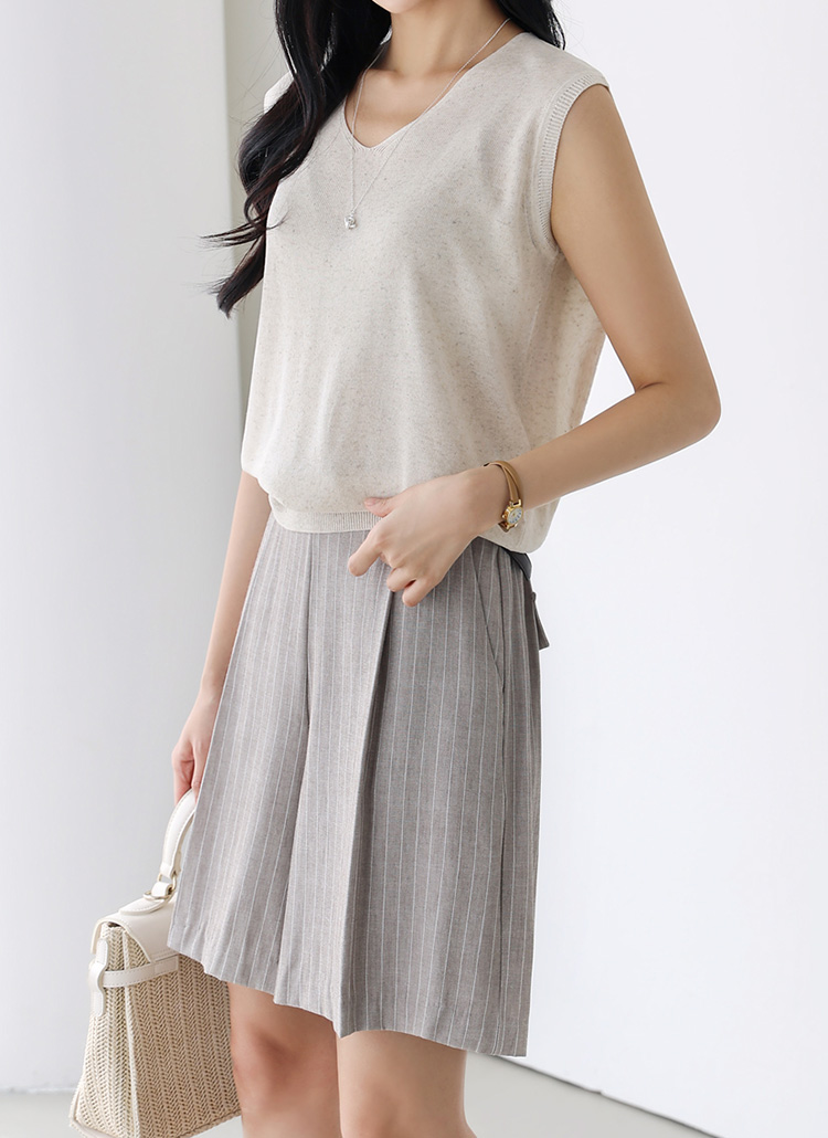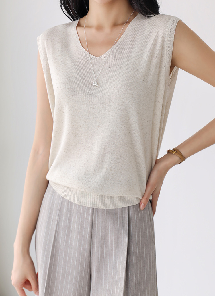 [The Onme] (4 Colors) Tencel Linen V-Neck Sleeveless Knit Top