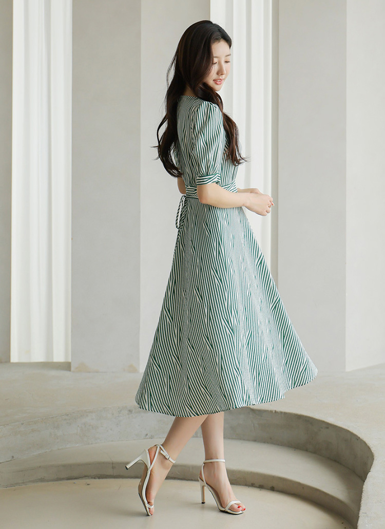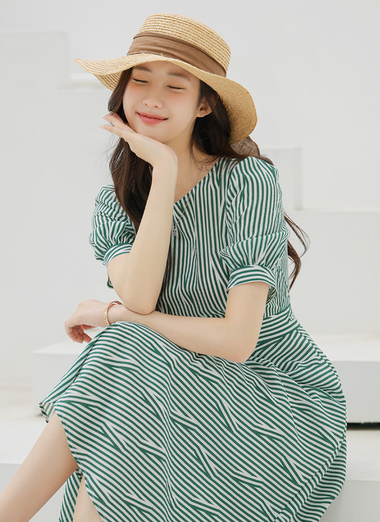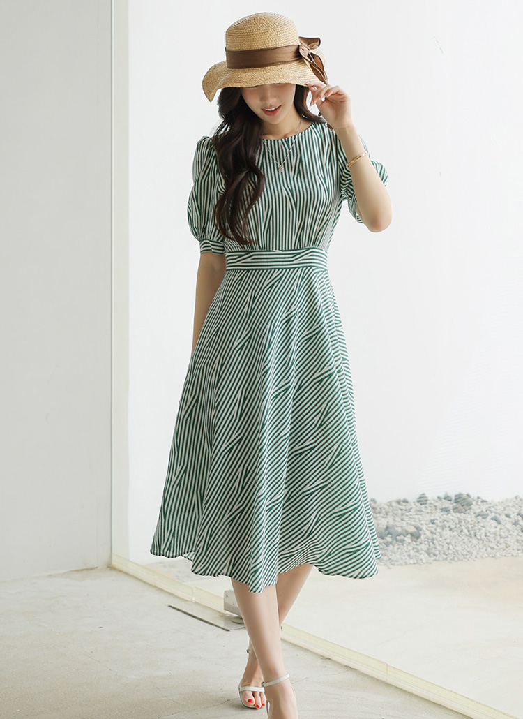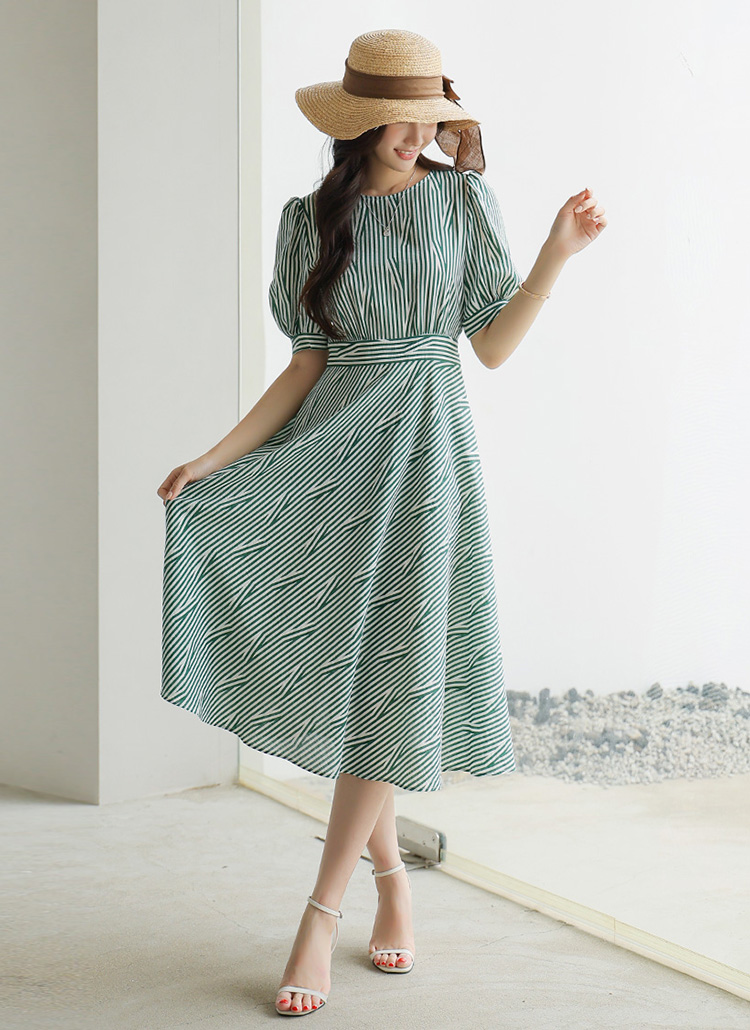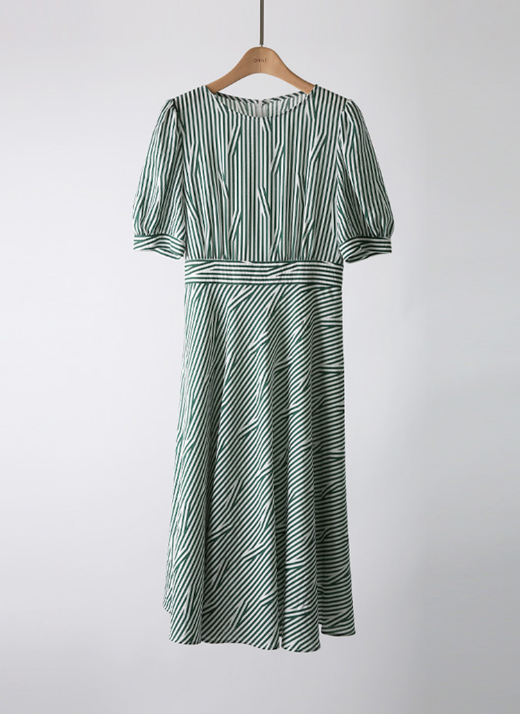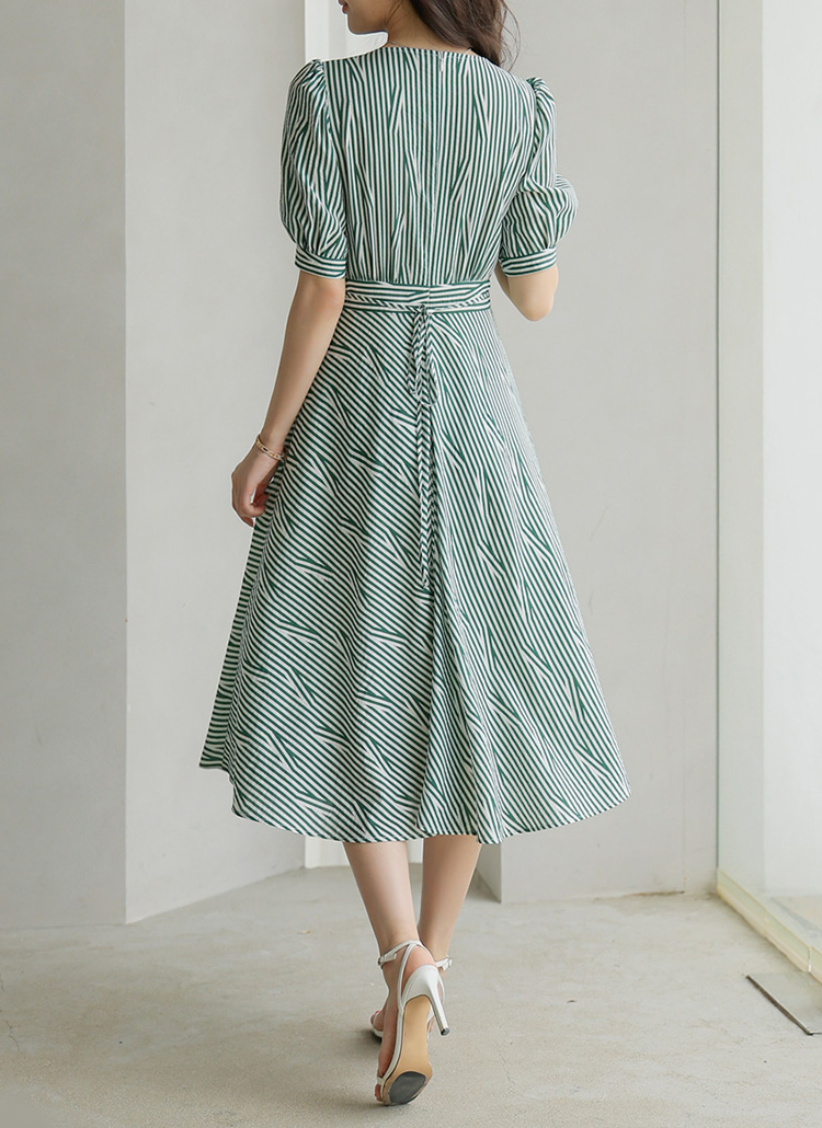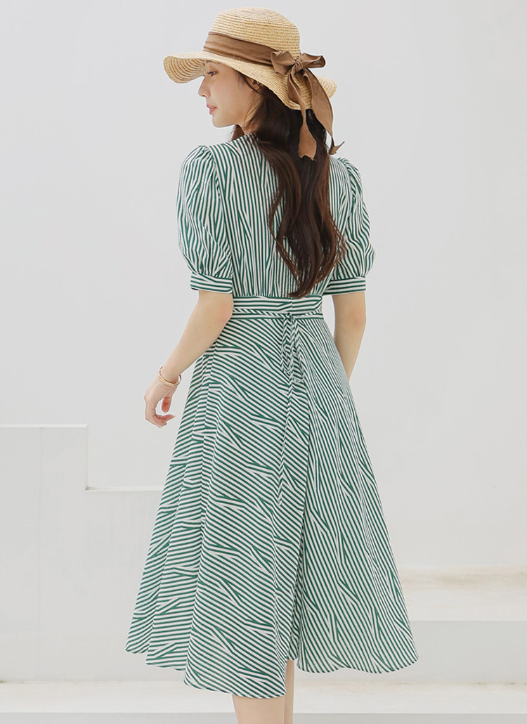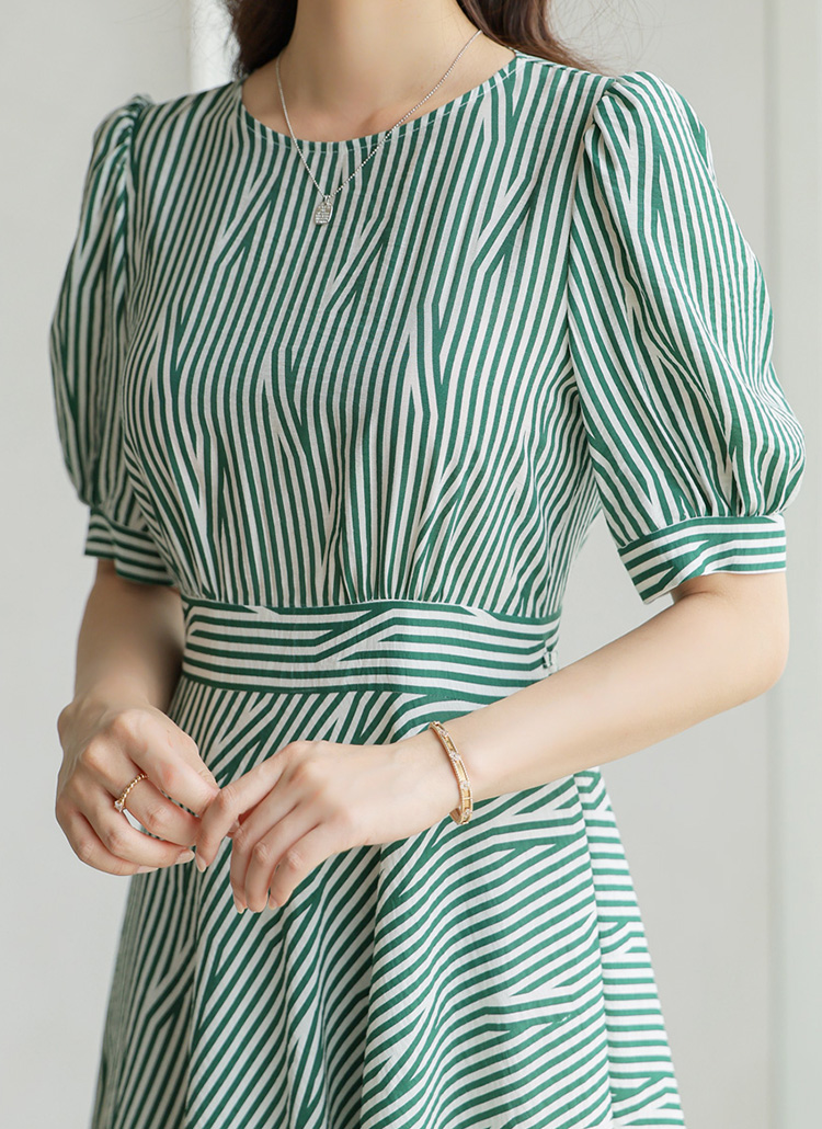 [LouisAngel] Green Stripe Puff Sleeve Dress