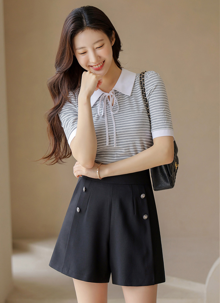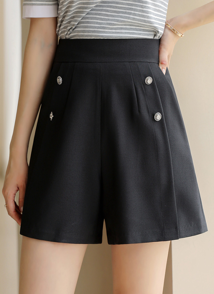 [Chic slacks-style shorts with silver double buttons and pintuck detail—perfect for office, events, or smart casual wear.]