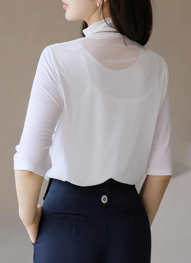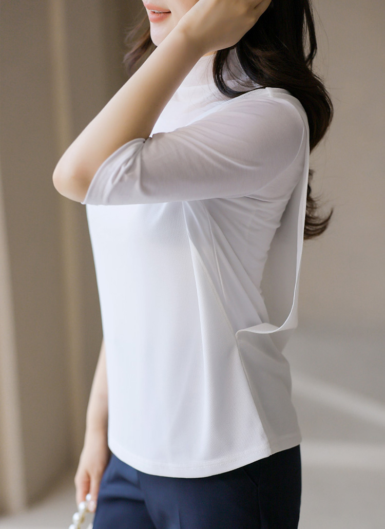 (4 Colors) Soft Stretch Mesh-Layered Mock Neck Tee
