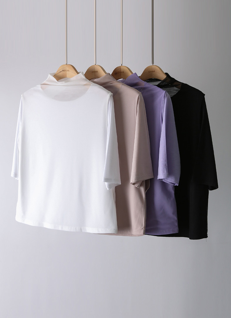 심플하면서 세련된 멋으로 즐기시기 좋은 반하이넥 5부 소매 티셔츠에요 :)