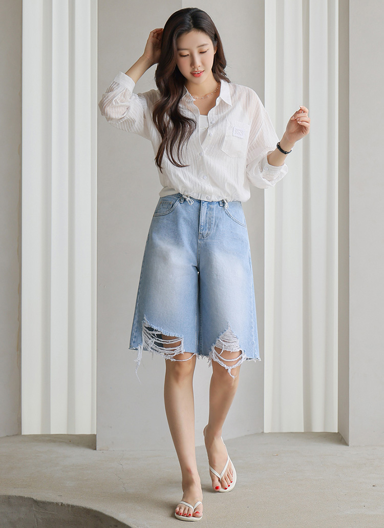 5부 기장의 버뮤다 데님 반바지에요 :)