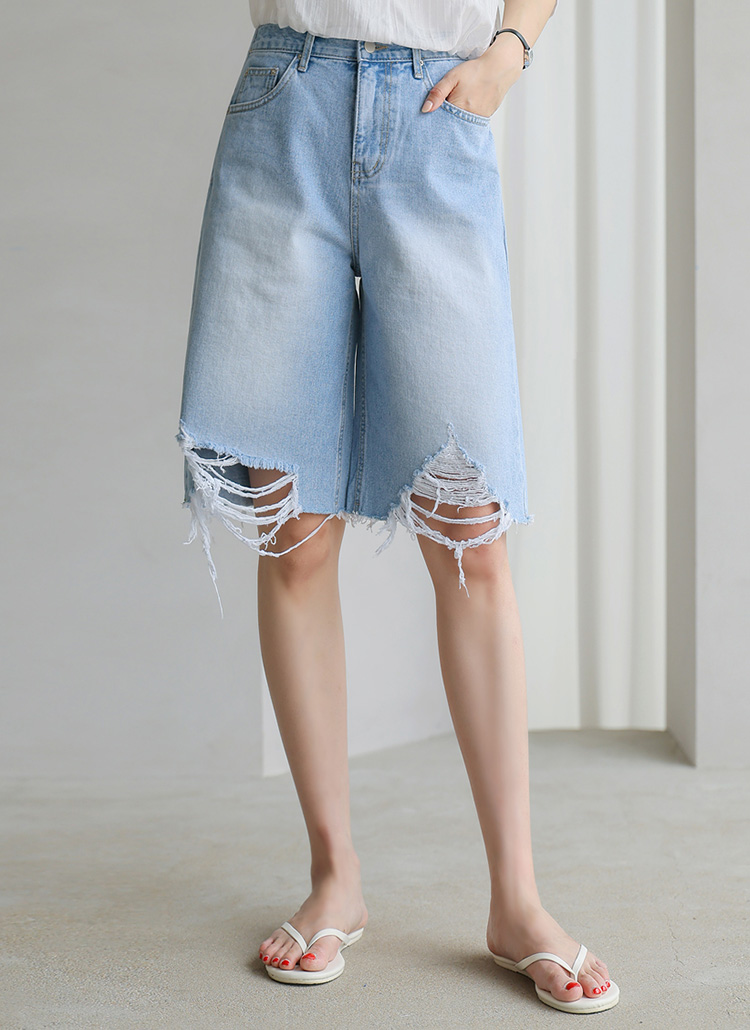 Distressed Bermuda Denim Shorts