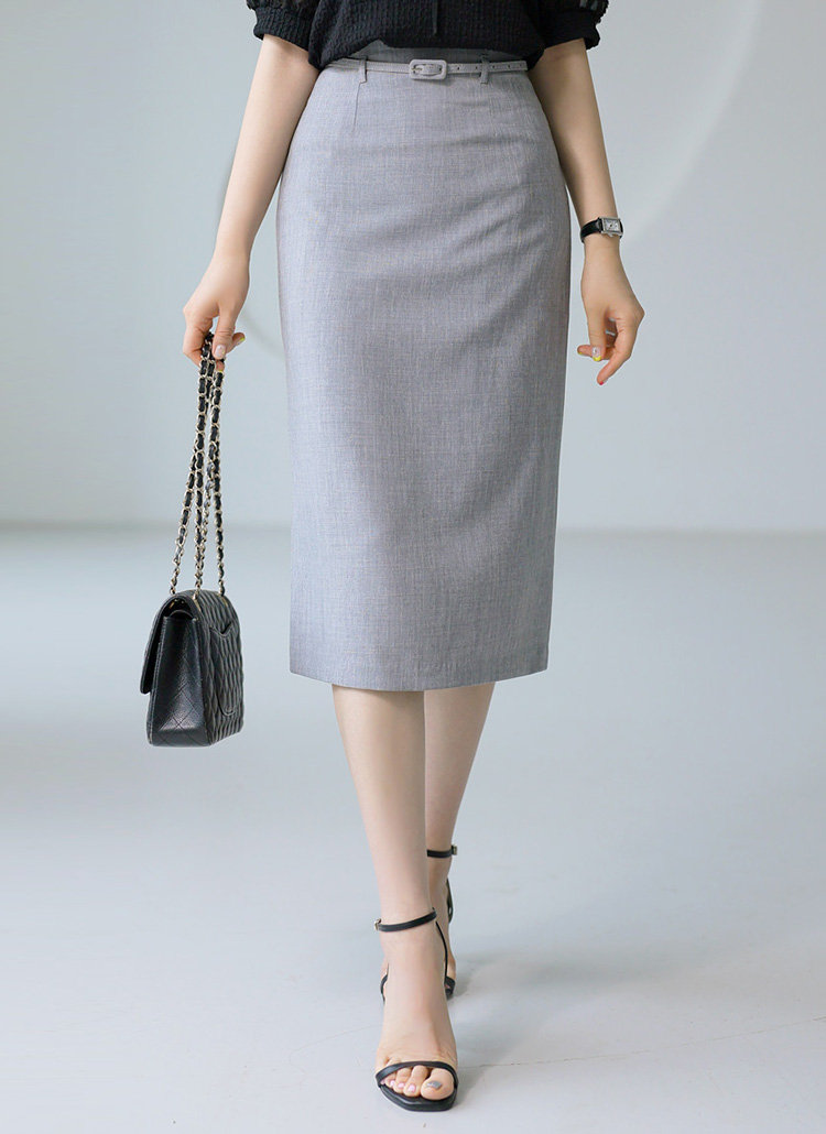 [A modern office staple with a sleek belt set and back slit—flatters the waist and moves with ease thanks to stretch fabric.]