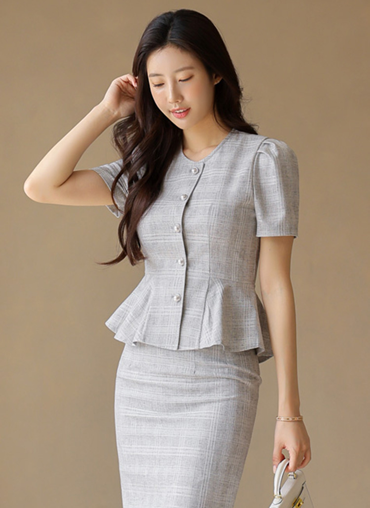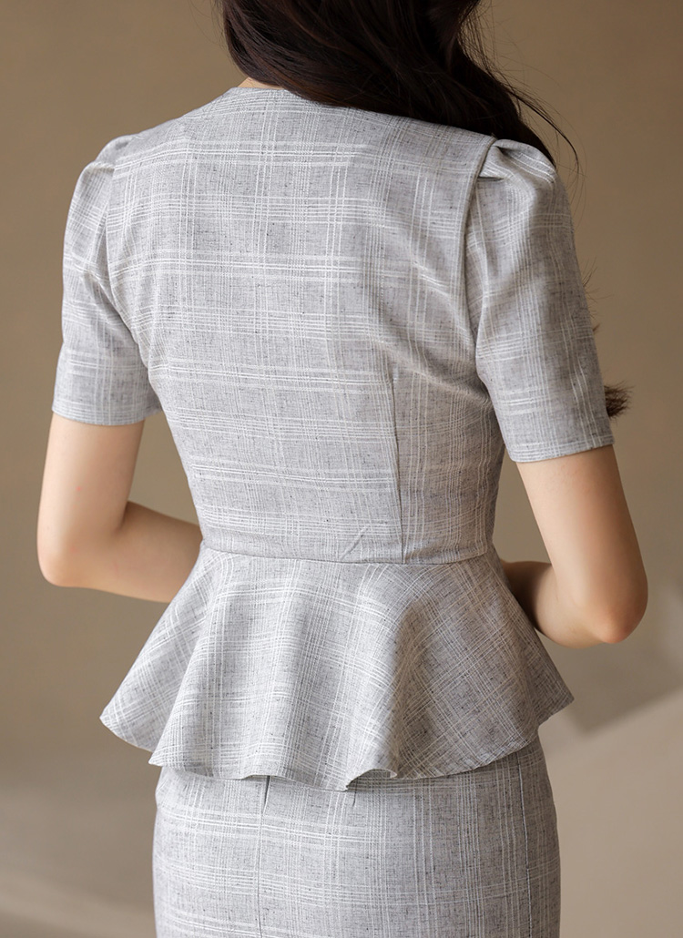 페플럼 라인으로 허리를 강조해주어 여성스러운 실루엣을 완성하며