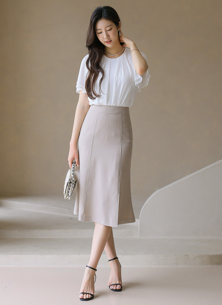 세련된 절개라인이 돋보이는 머메이드 스커트로