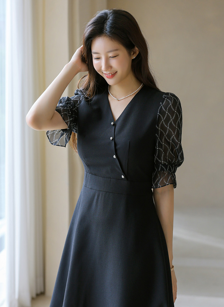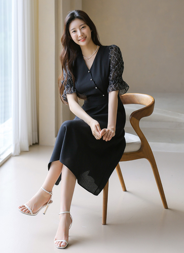 체인 패턴이 돋보이는 쉬폰 소매로 세련된 포인트를 준
